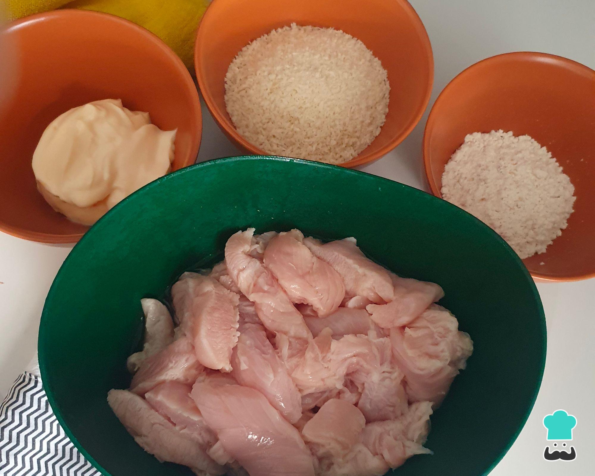 Coloque os filezinhos de frango em uma tigela ou bowl.