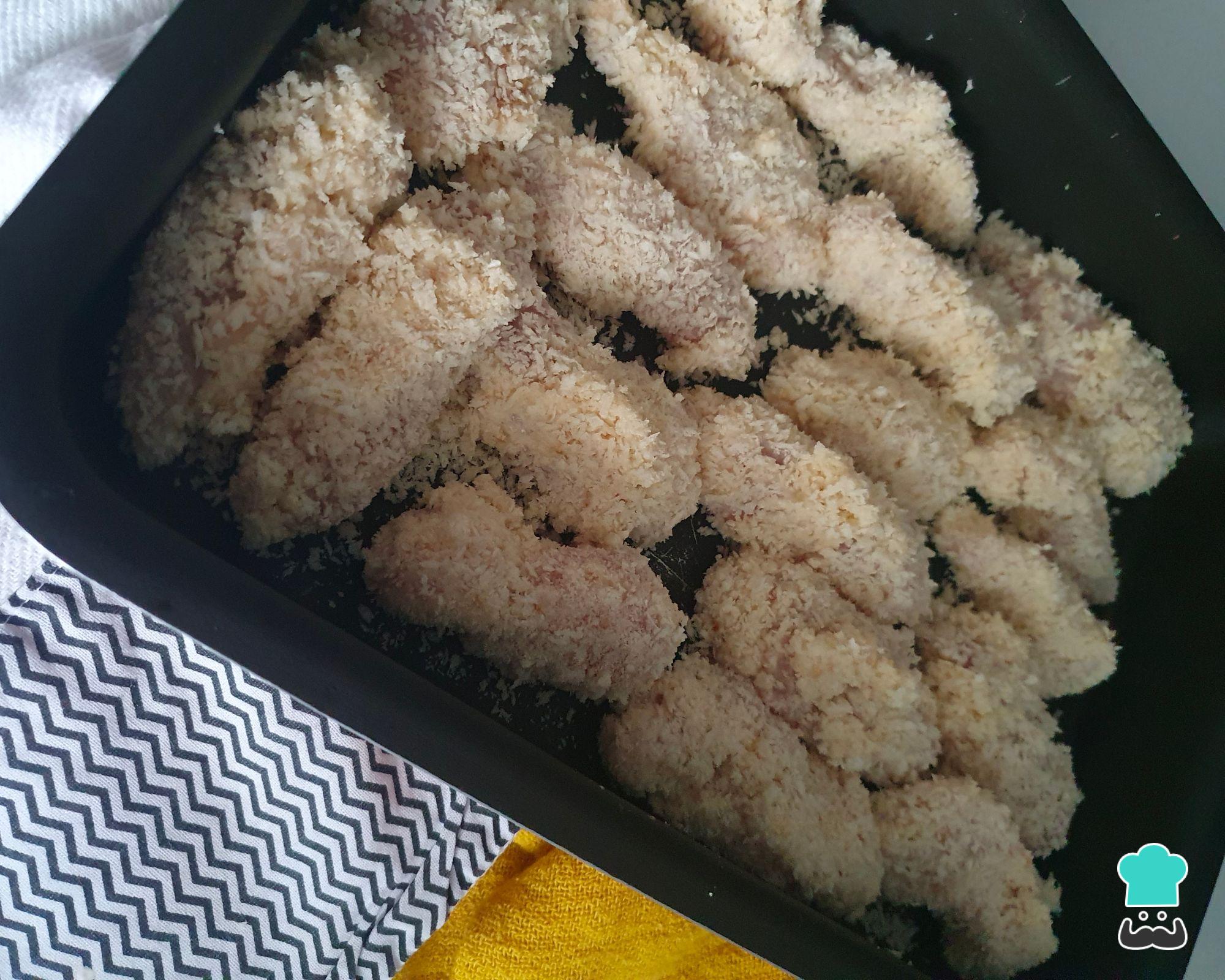 Acomode os filezinhos já empanados em um tabuleiro .