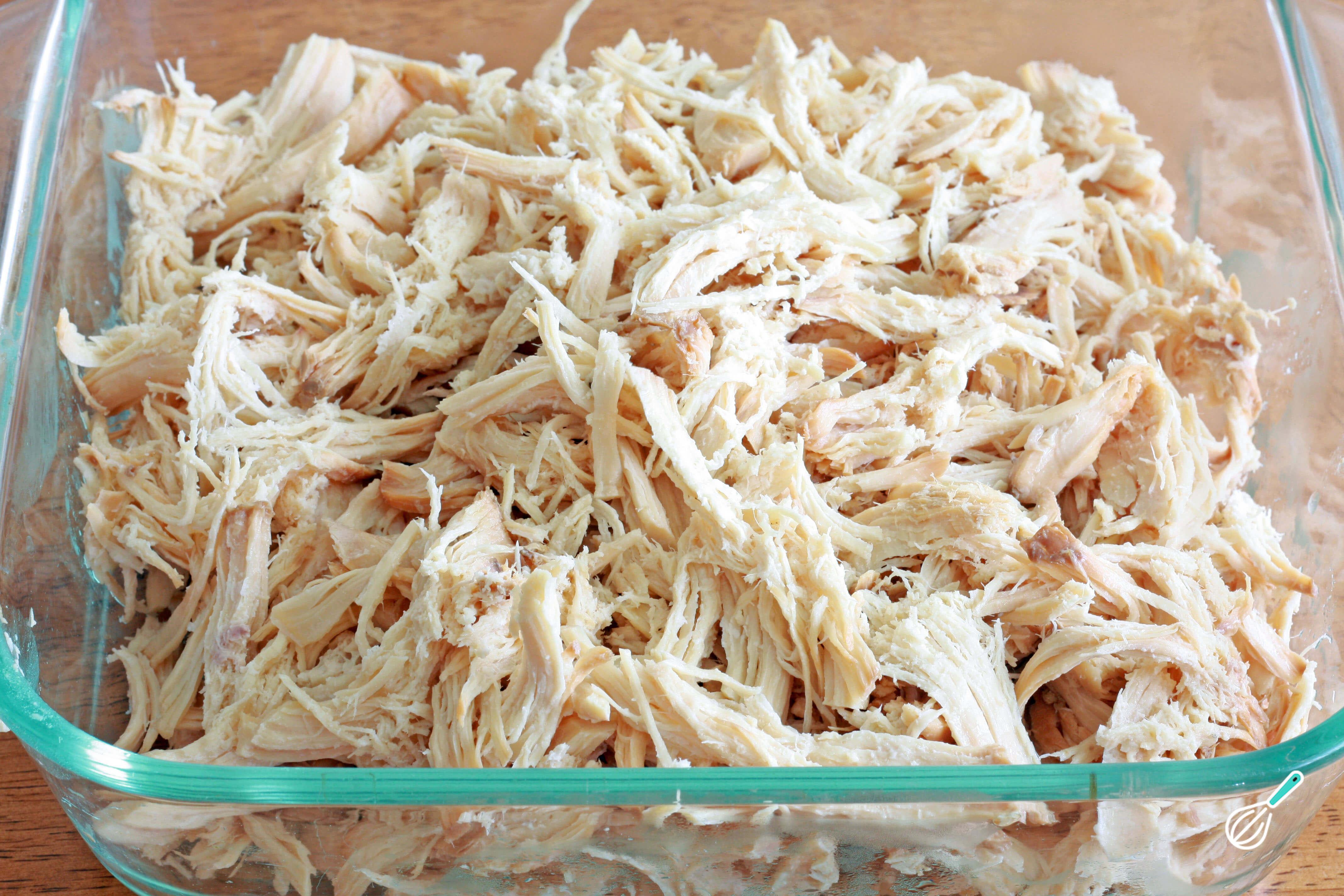 Seu frango desfiado ao forno está pronto a comer! Recomendamos que acompanhe esse prato com arroz de amêndoa.