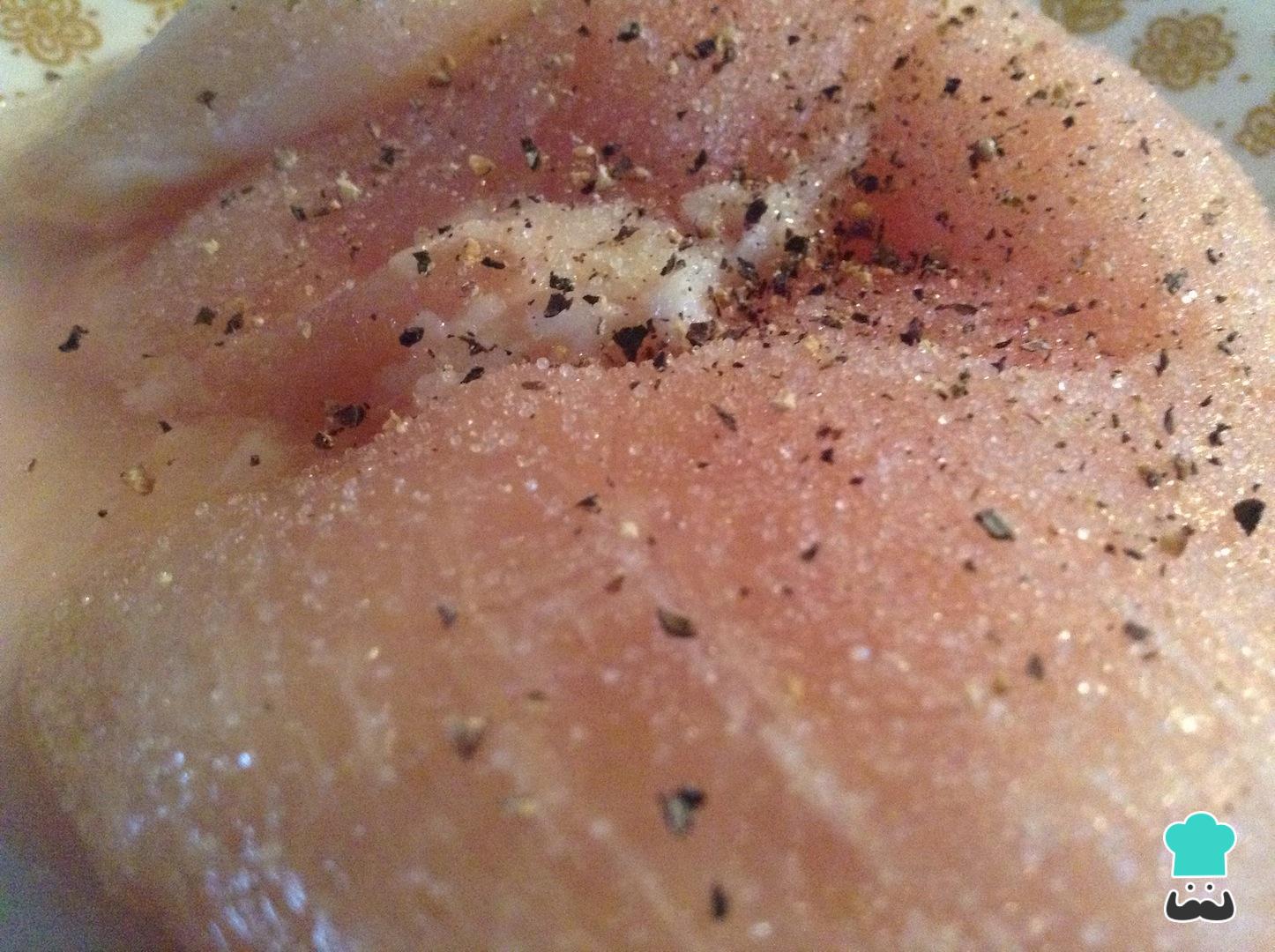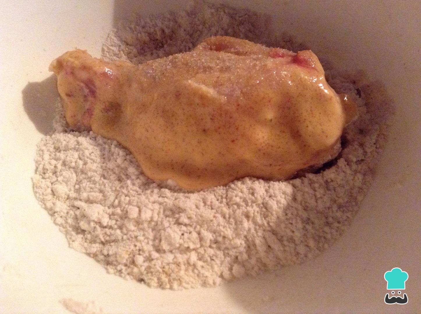 Comece seu frango empanado com maionese no forno, temperando as sobrecoxas com sal, alho, pimenta, shoyu e colorau.