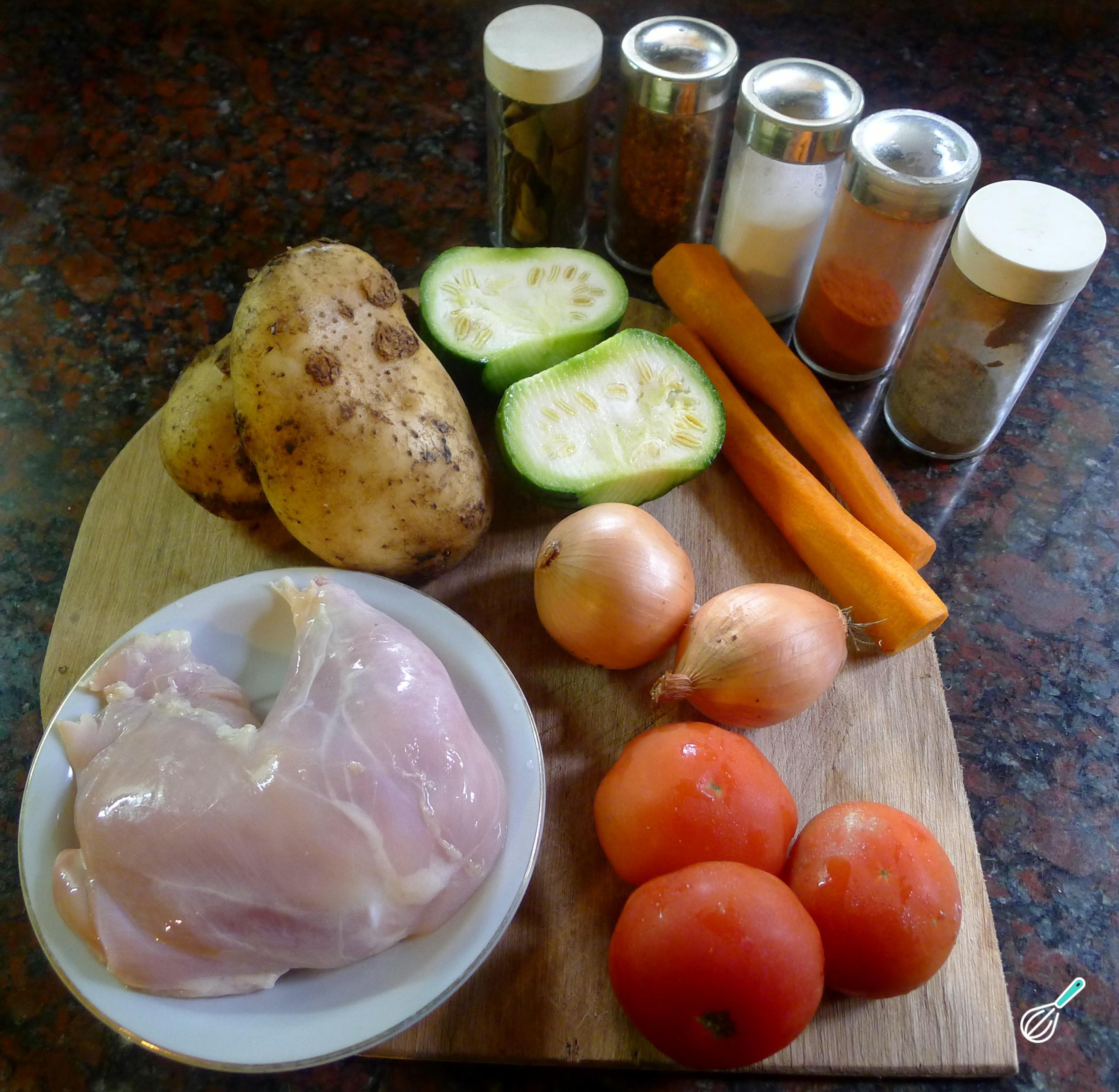 Comece por reunir os ingredientes desta receita de Frango ensopado com legumes. Assim será mais fácil e prático seguir os passos seguintes.