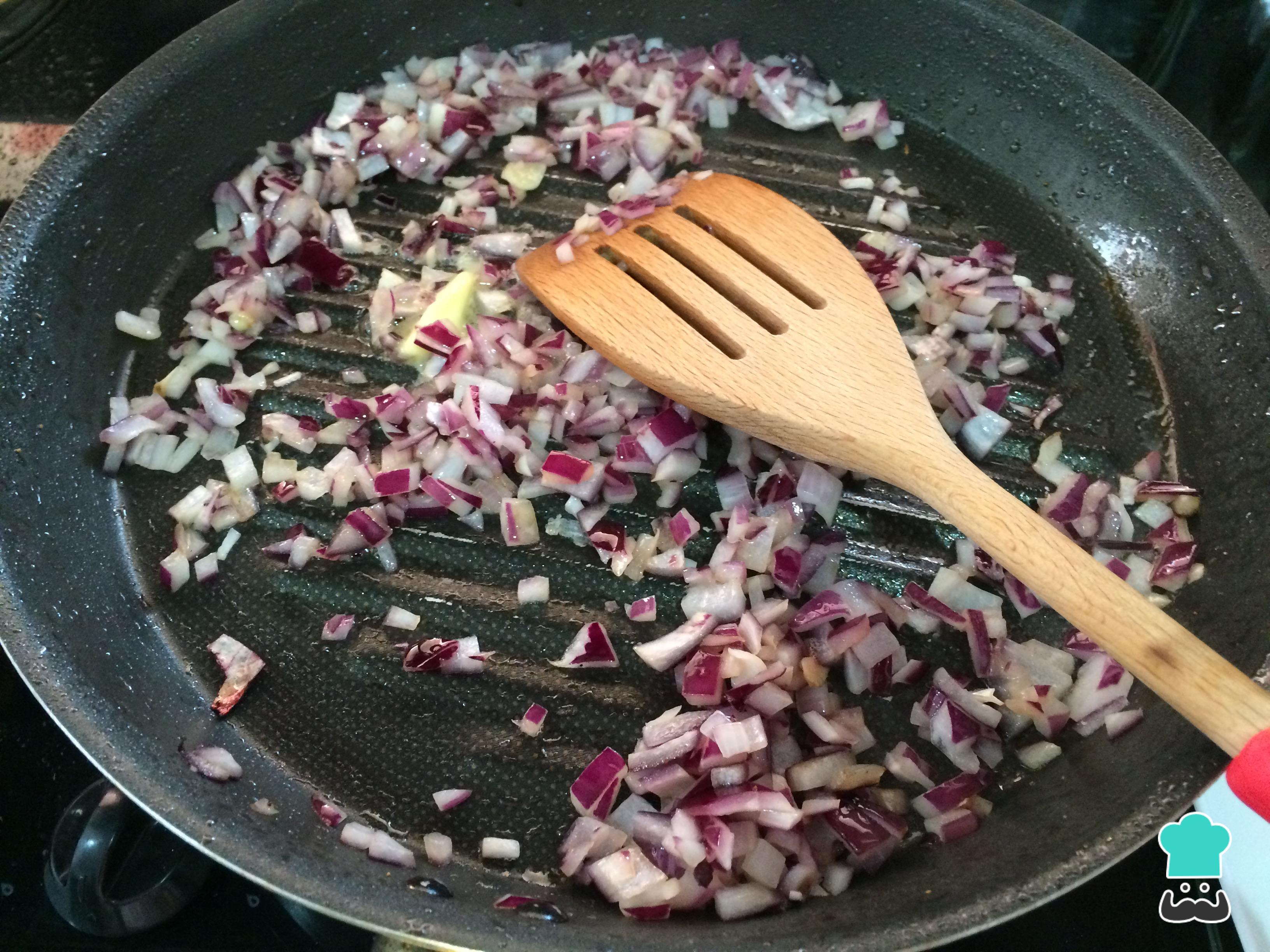 Na mesma frigideira com um pouco mais de óleo, refogue a cebola e o alho cortados finamente até que estejam macios.