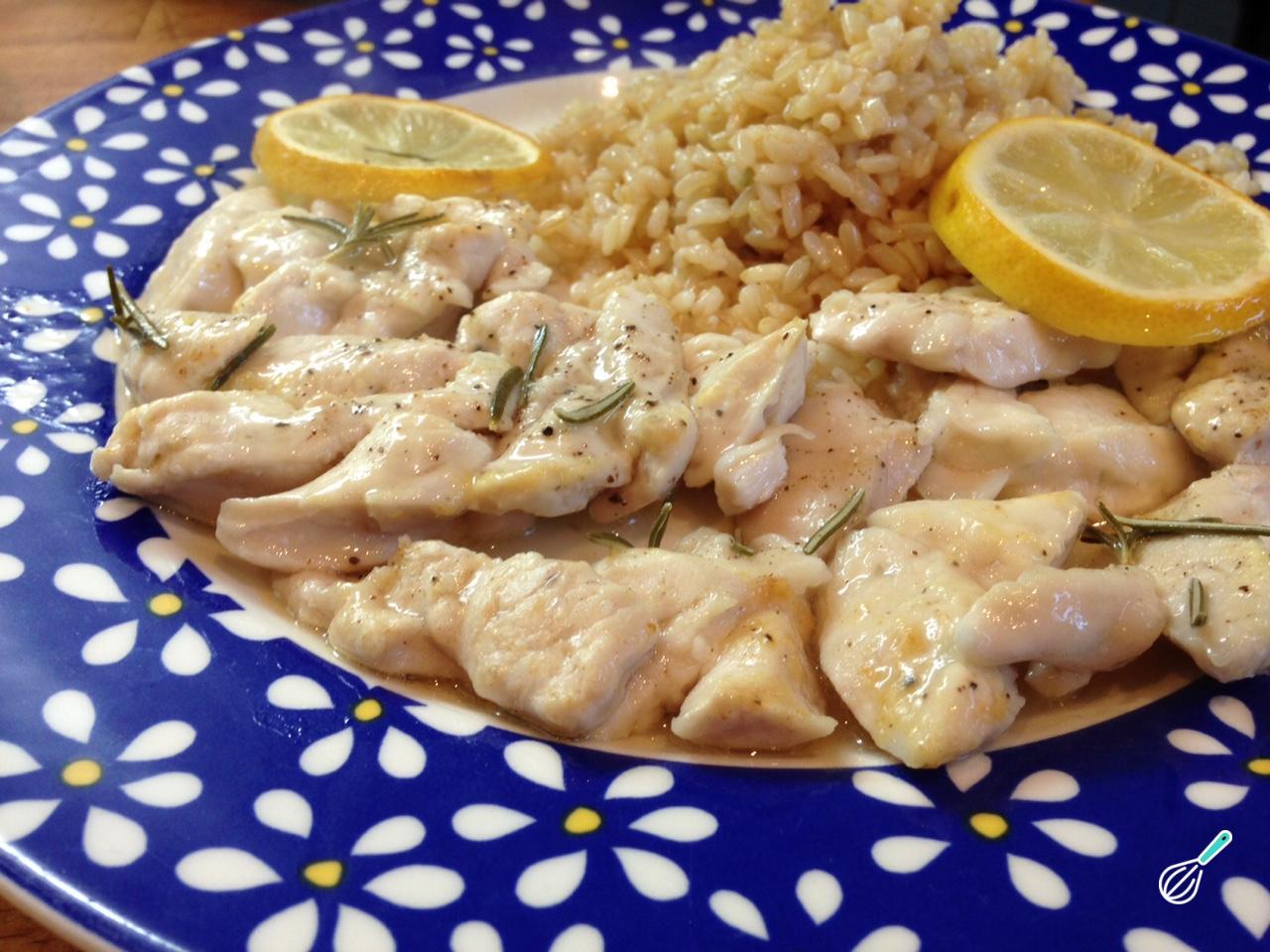 Sirva este prato de frango marinado com limão com um pouco de arroz integral e, se você ama limão, aproveite o caldo de limão e alecrim para temperar o arroz.