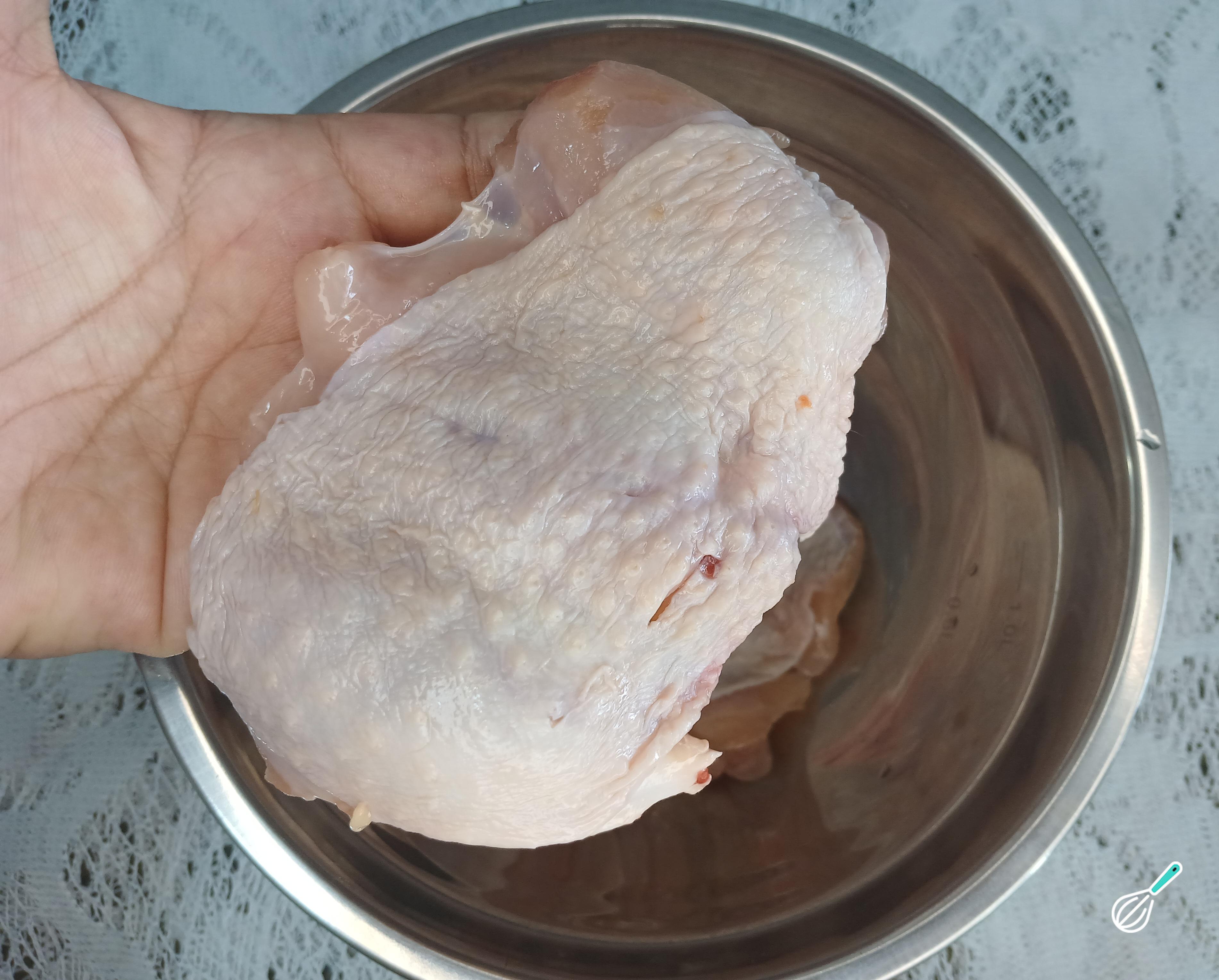 Dica: As coxas de frango podem ser substituídas por sobrecoxas ou filé de peito de frango.