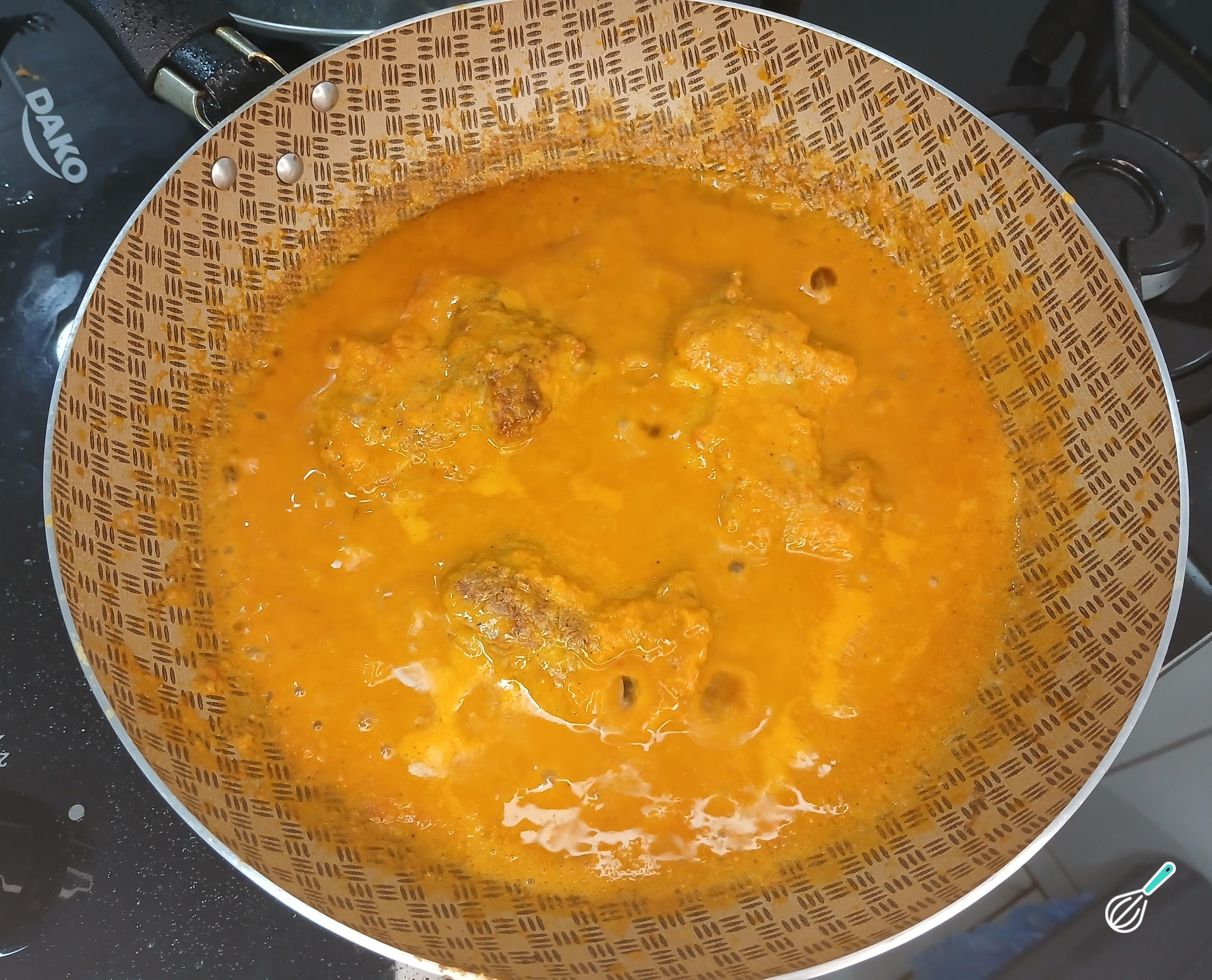 Depois que o frango cozinhar um pouco, transfira o conteúdo do liquidificador para a panela. Cubra o frango com o molho. Mantenha o fogo baixo e deixe cozinhar para que o molho penetre no frango e dê sabor. Depois que estiver bem apurado, desligue.