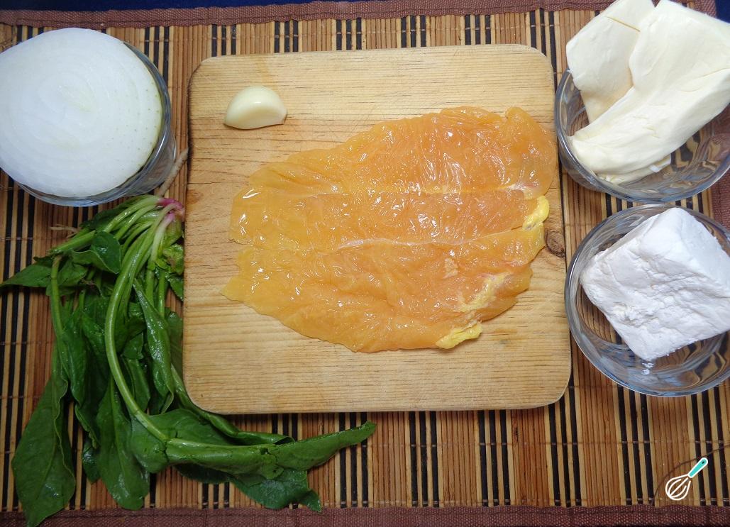 Em primeiro lugar reúna os ingredientes necessários a essa receita de peito de frango recheado.