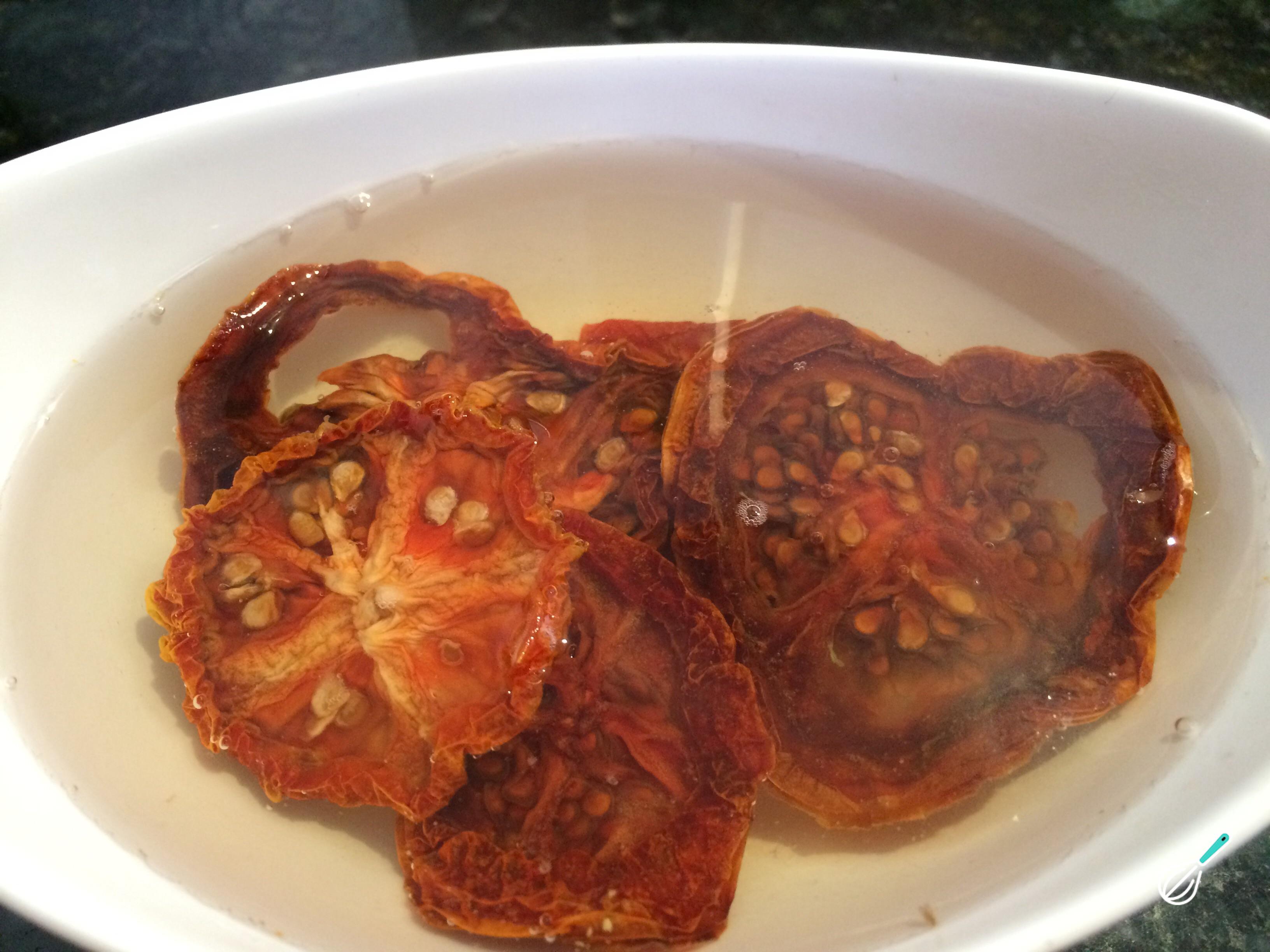 Hidrate os tomates por 10 minutos em uma tigela com água quente, ou até que estejam macios.