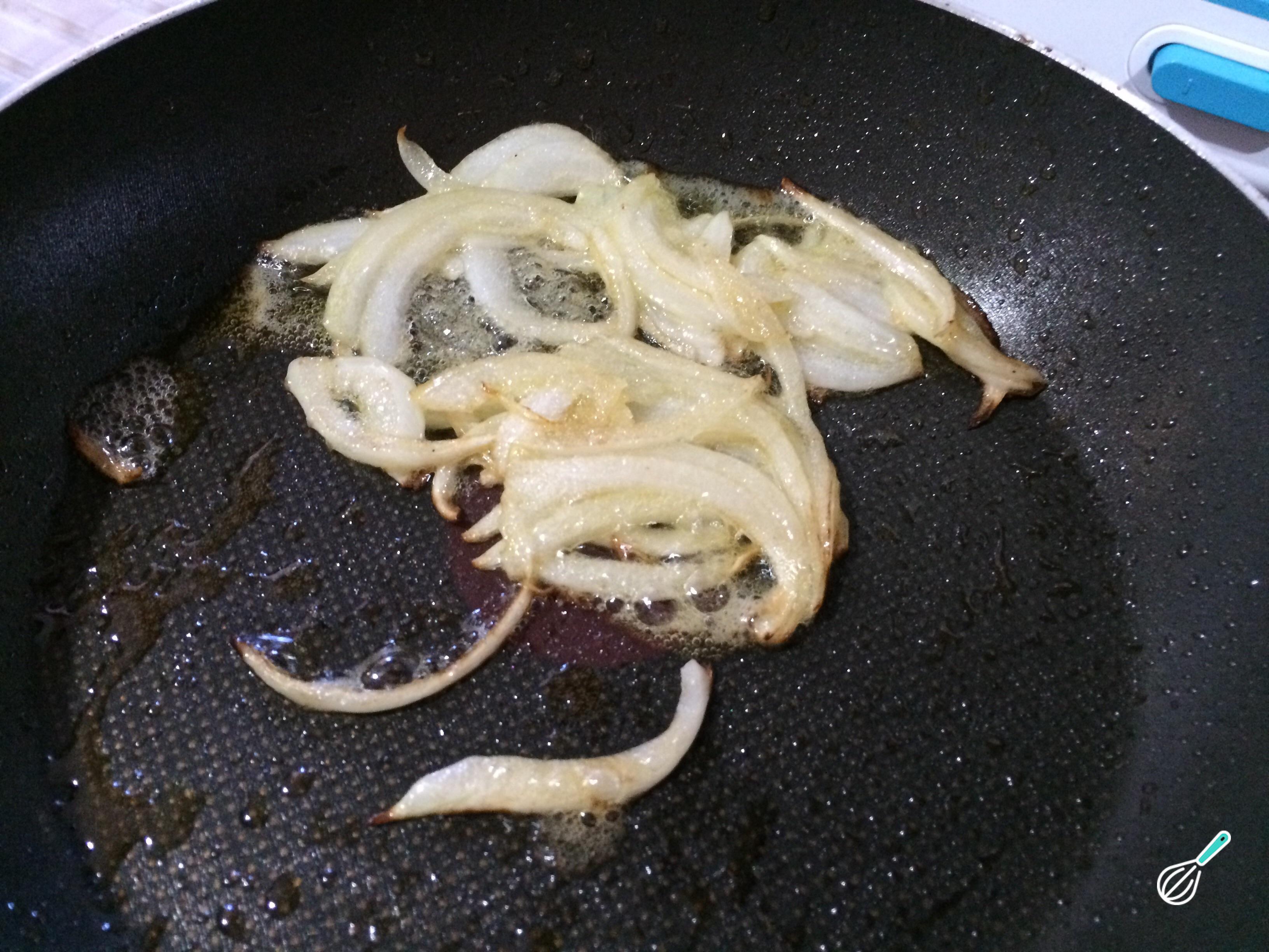 Neste passo você está preparando a cebola caramelizada para rechear o peito de frango.