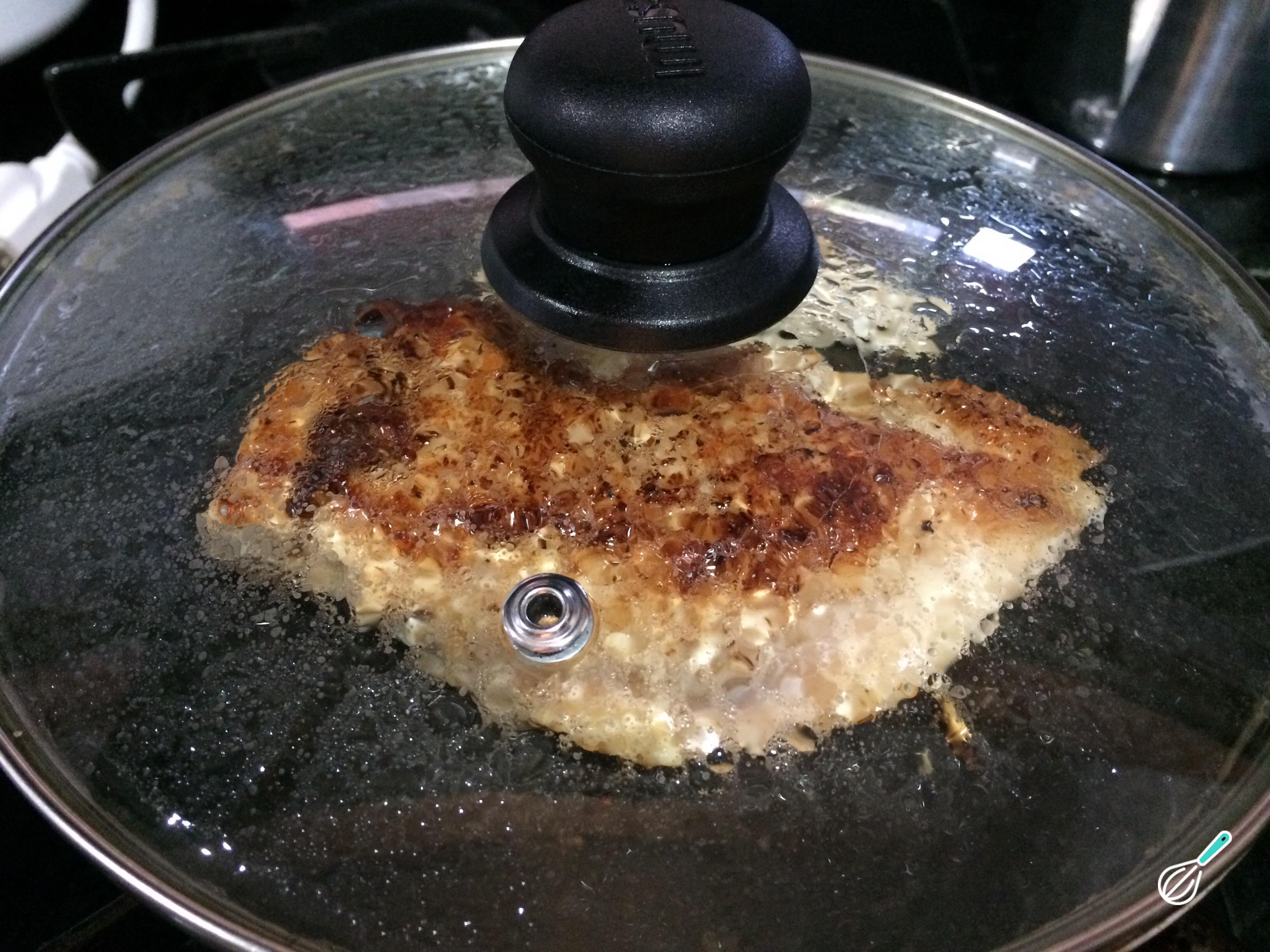 Quando a carne estiver dourada por fora, baixe o fogo, tampe a frigideira e deixe ficar por 20 minutos, de forma a que a parte de dentro fique cozinhada também.