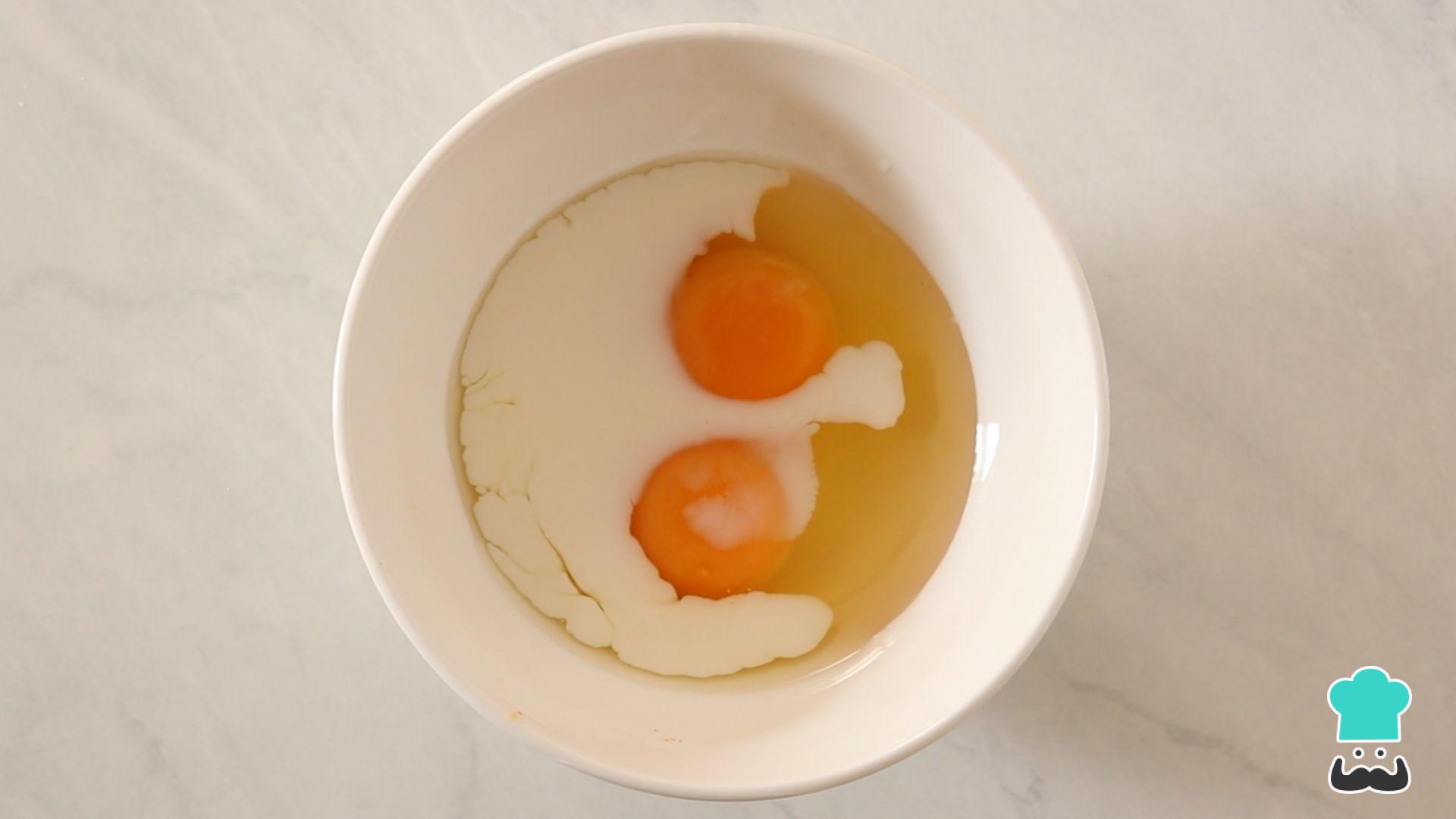 Comece batendo os ovos com o leite - esse é um truque para conseguir uma fritada macia.