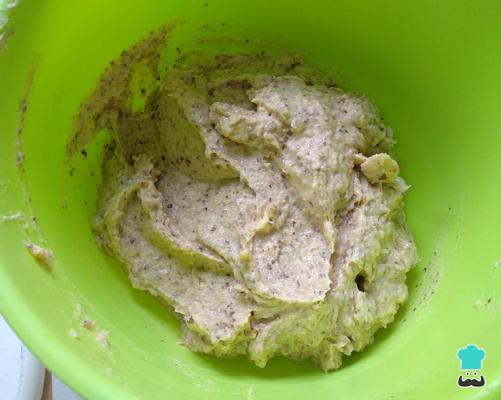 Seguidamente adicione a farinha de amêndoas e misture com uma colher ou espátula até obter um creme sem grumos.