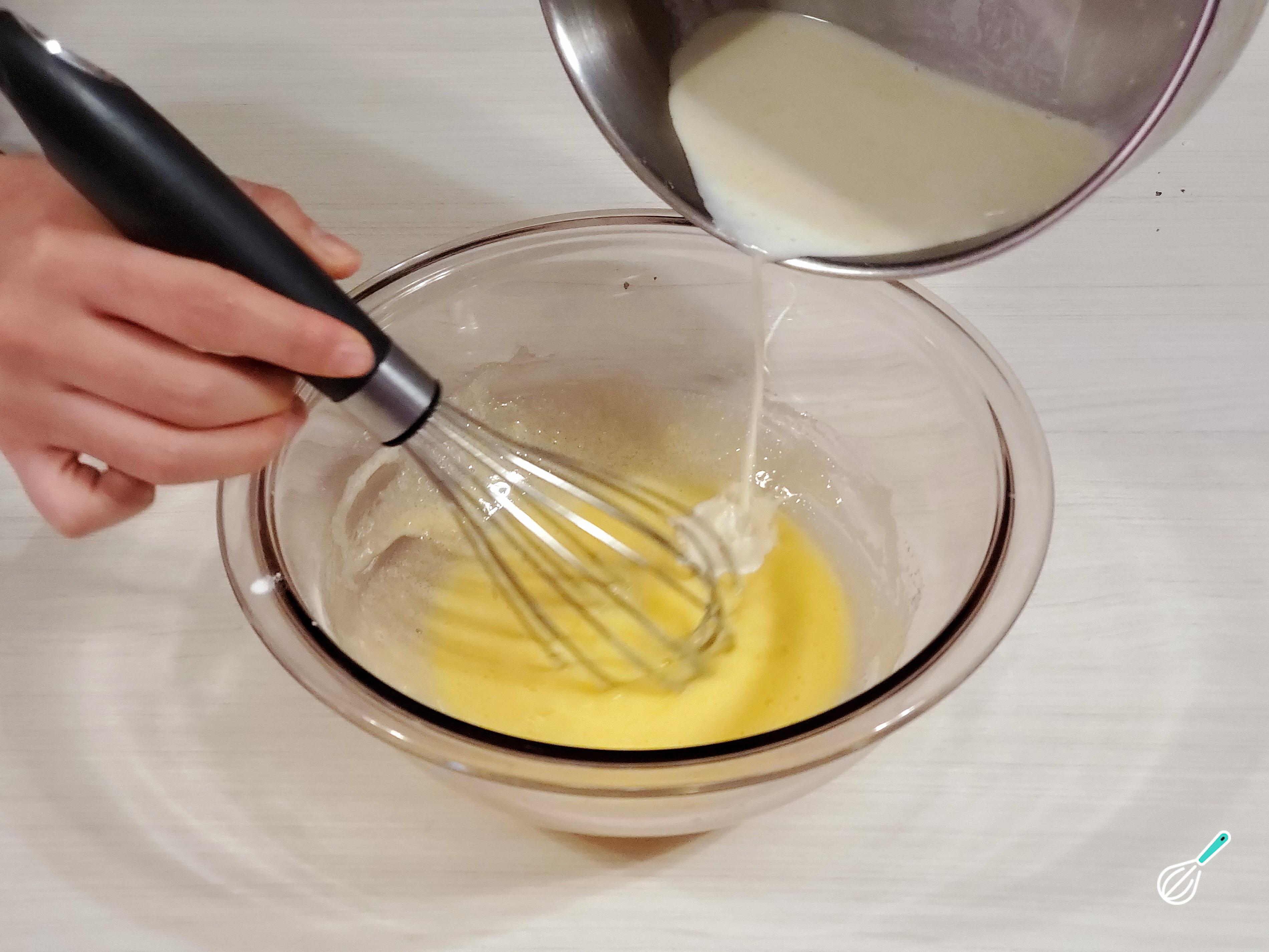 Em uma tigela, misture as gemas com o açúcar e o amido de milho, mexendo bem com um fouet.