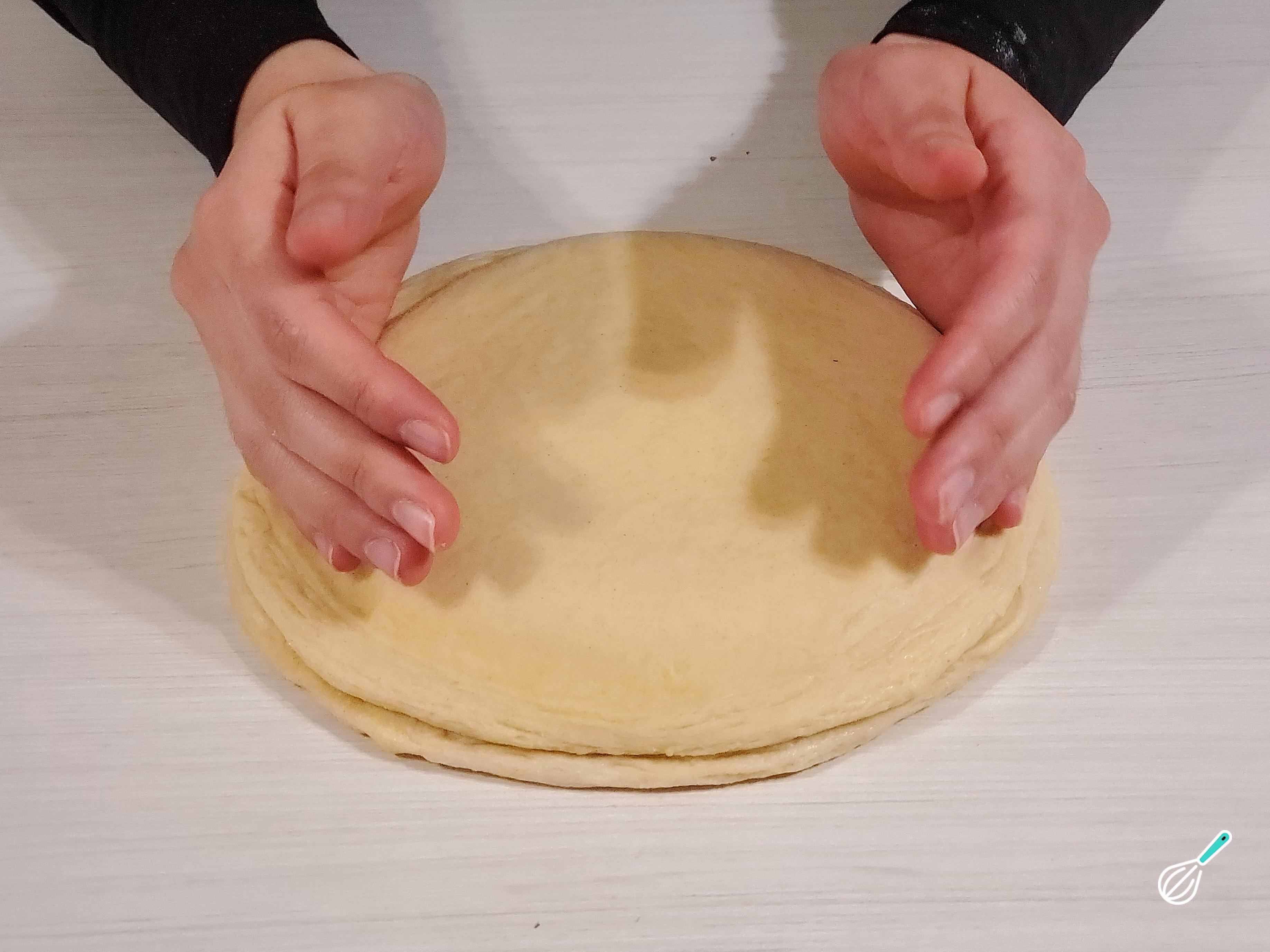 - Repita o tempo de descanso e as dobras mais uma vez. Em seguida, estique e você poderá usar essa massa para suas sobremesas.