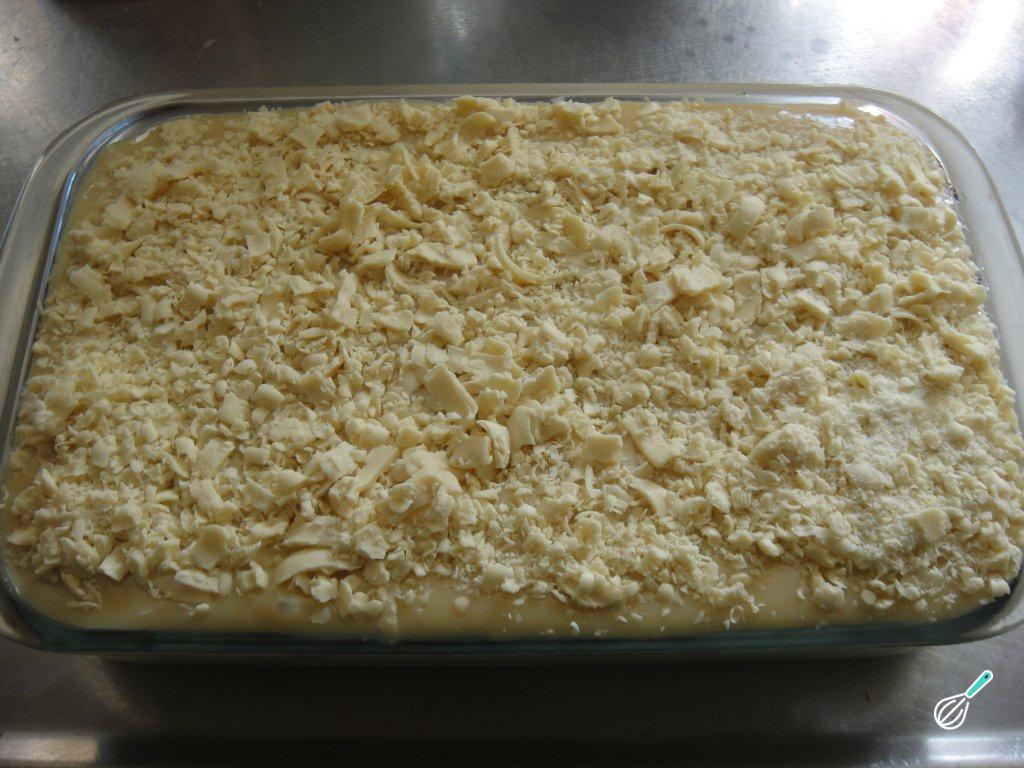 Sobre o recheio de frango espalhe o creme, polvilhe o queijo ralado e a farinha de rosca. Leve ao forno preaquecido a 200ºC por cerca de 15 minutos, somente para gratinar e dourar.