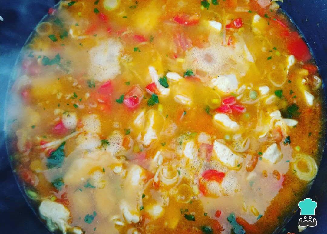 A galinhada é uma receita típica de várias regiões no Brasil: Bahia, Minas Gerais, Goiás... e um todos esses lados é feita de um jeito um pouco diferente e com ingredientes tradicionais. Esta receita de galinhada com açafrão que apresento para você lembra a galinhada mineira ou galinhada da fazenda, porém é preparada com peito de frango em vez de galinha. Além do mais leva ingredientes bem simples e que todo o mundo tem em casa: alho francês, ervilha, tomate, pimentão vermelho, entre outros.