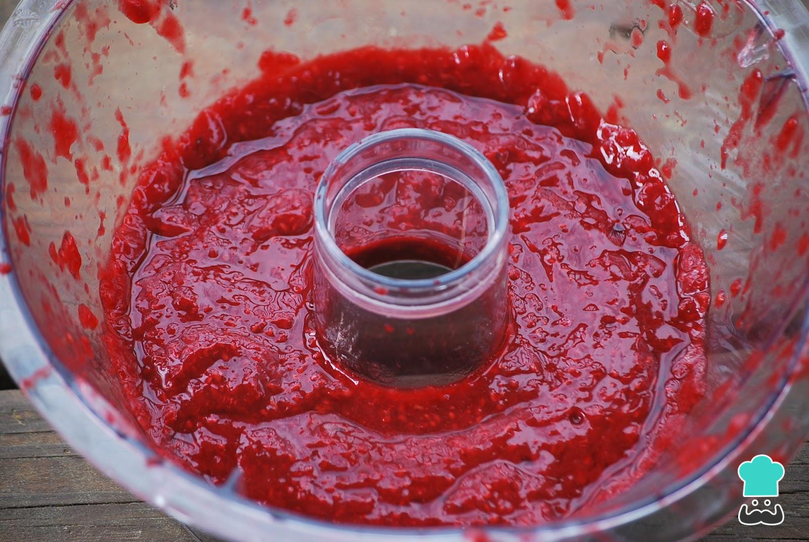 Para preparar esse delicioso ganache de morangos frescos o primeiro passo é bater os morangos no liquidificador ou processador, até obter um purê.