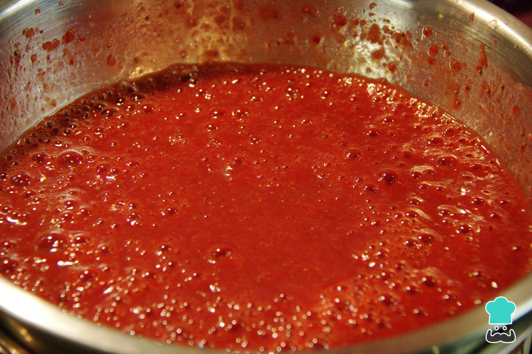 Transfira o purê de morango para uma panela e leve ao fogo médio. Deixe ferver, mexendo sempre, durante cerca de 20 minutos ou até o purê reduzir para metade. Desligue e deixe esfriar por completo.