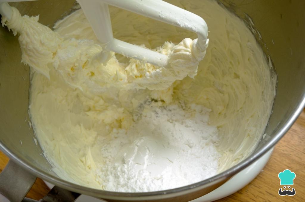 Acrescente metade do açúcar de confeiteiro peneirado e mexa para misturar bem.