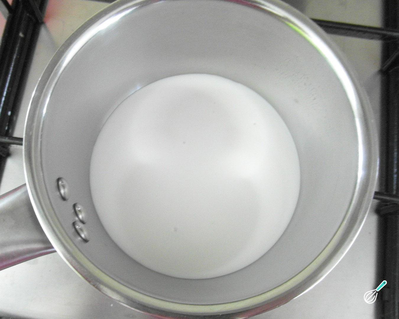 Leve o leite de coco ao fogo médio e deixe até quase ferver - neste caso o leite de coco não precisa ferver, somente precisa esquentar bastante. Se desejar, poderá aromatizar adicionando essência de baunilha.