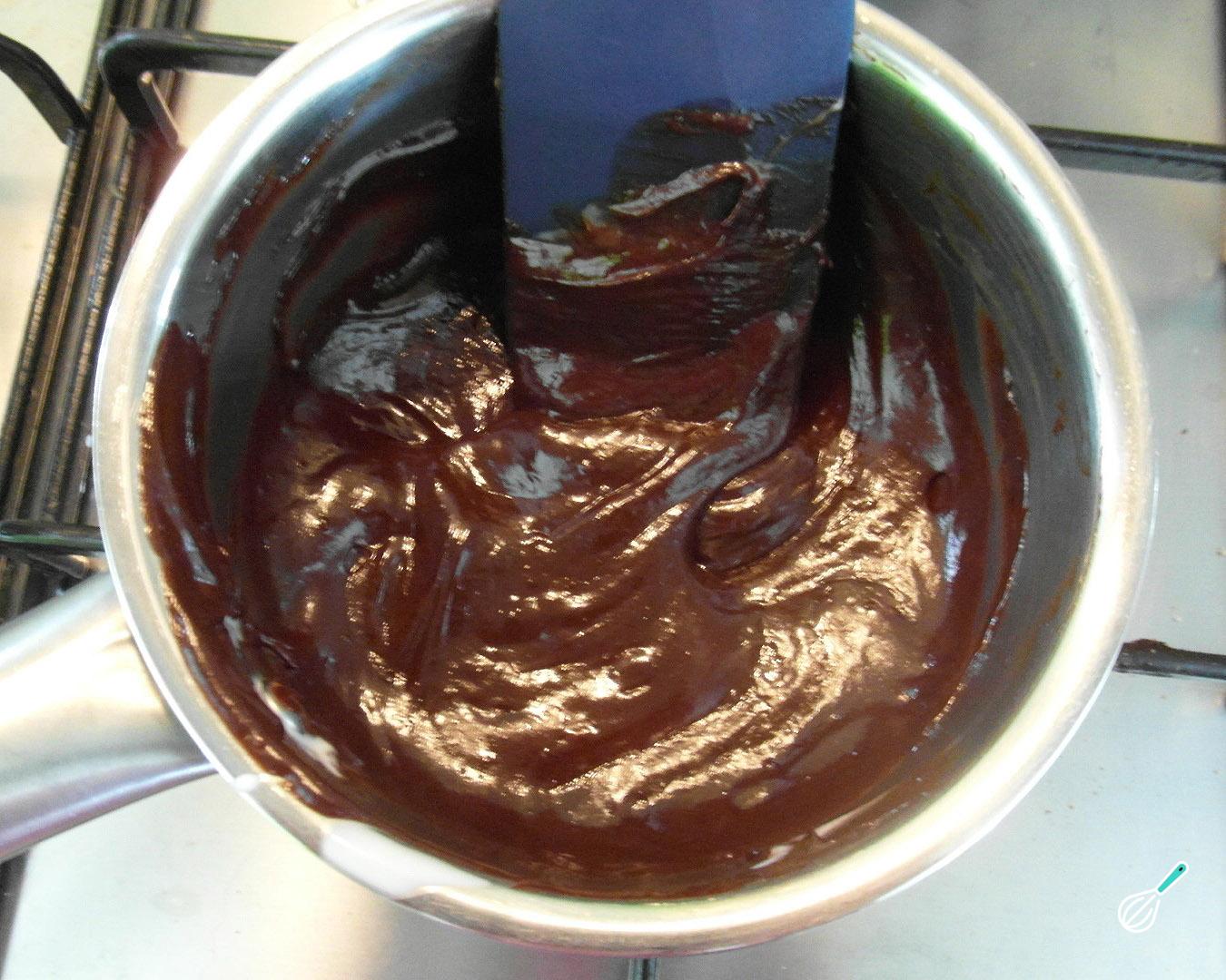 - Misture muito bem até derreter o chocolate completamente nesse preparado;