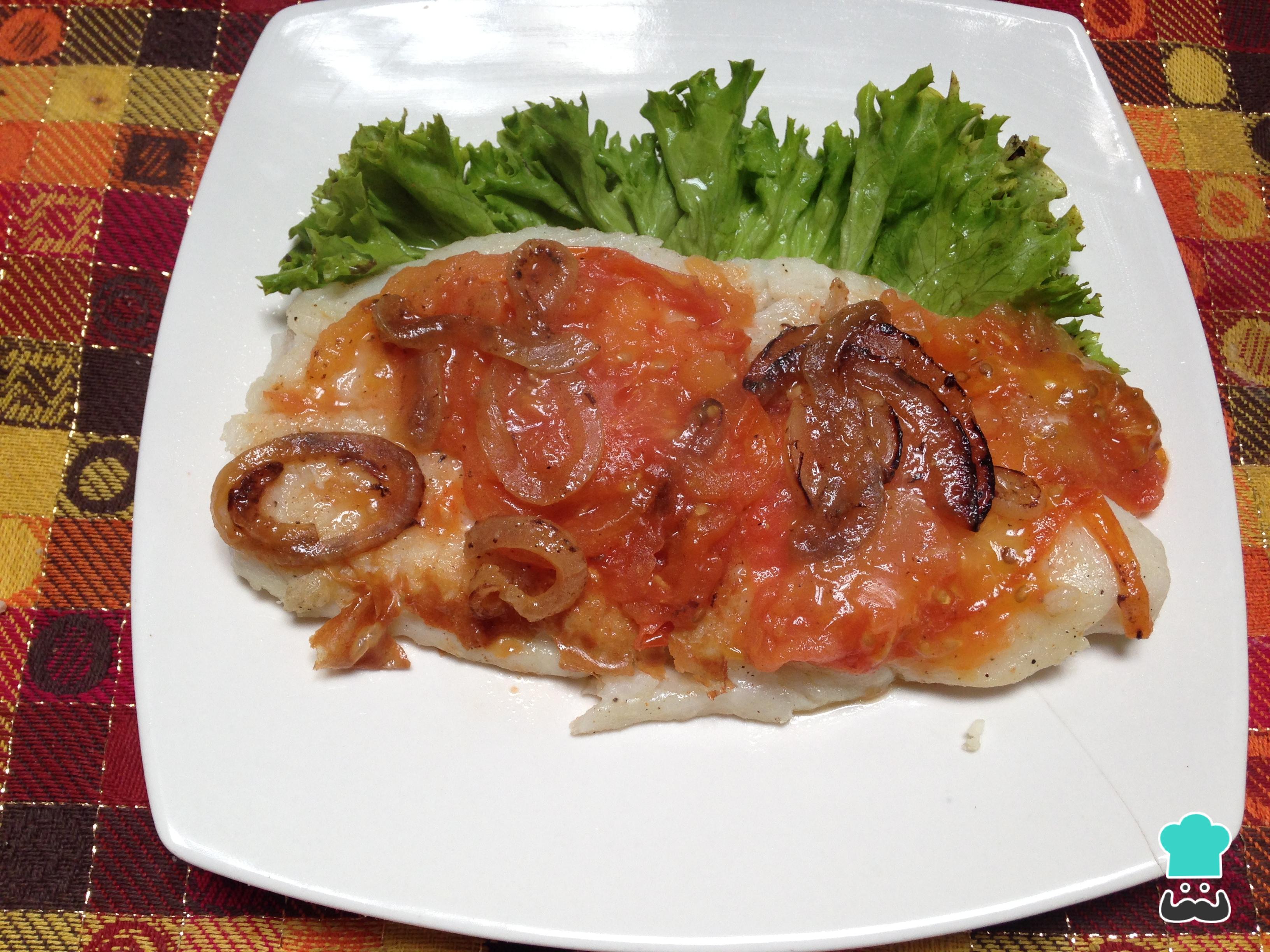 Cubra a garoupa com camadas de cebola e tomate e leve ao forno a 170 º C por 20 minutos.
