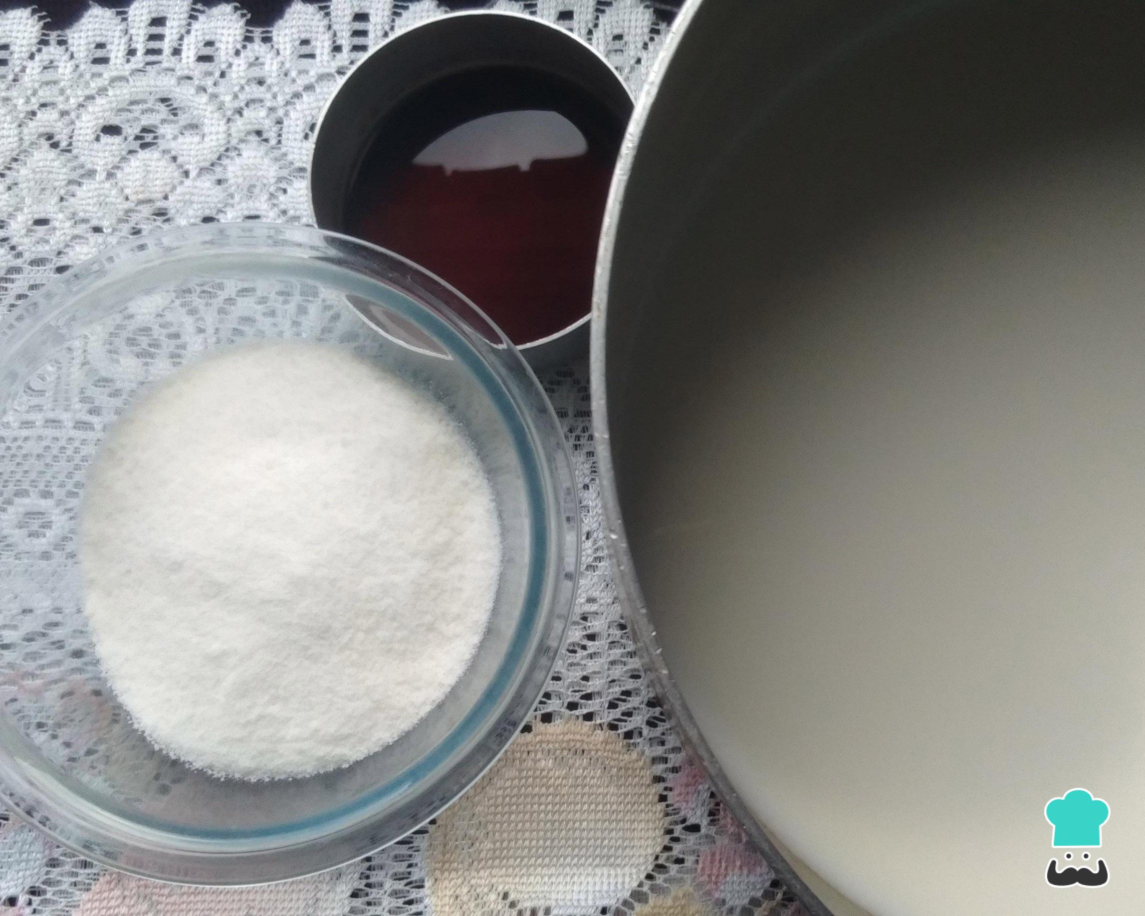 O leite é a base deste geladinho de baunilha, por isso separe a quantidade necessária (500 ml, ou seja, meio litro de leite). Dessa quantidade, reserve meia xícara/copo de leite e coloque o restante numa panela junto com o açúcar no fogo baixo.