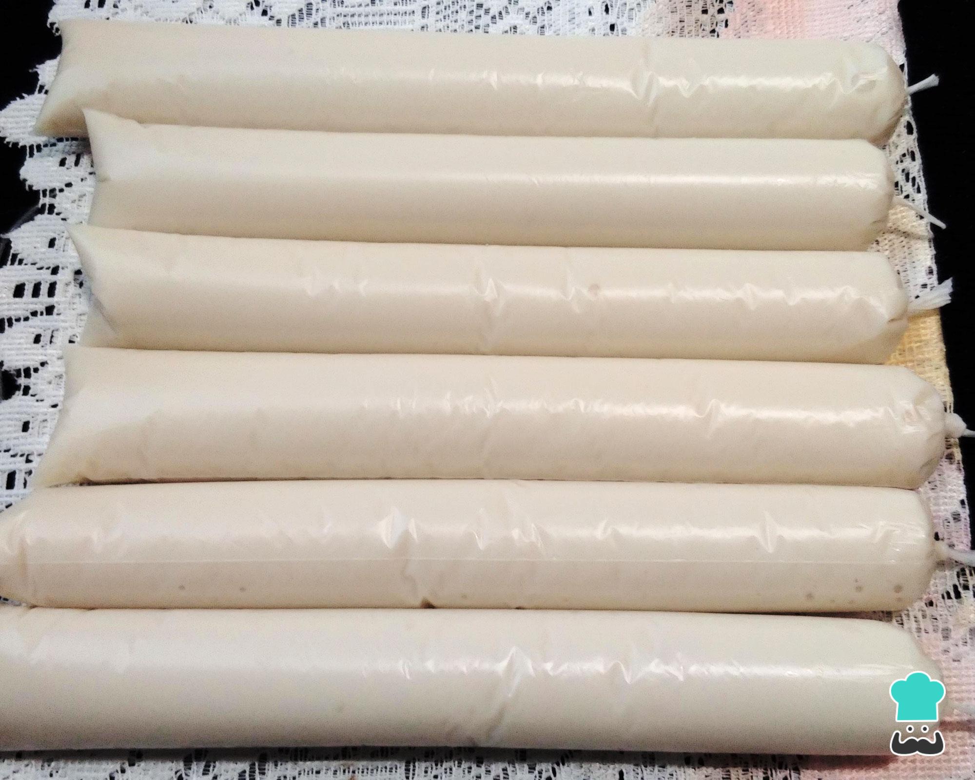 Quando o preparado de geladinho de baunilha estiver em temperatura ambiente coloque nos saquinhos, amarre e reserve no freezer por, pelo menos, 6 horas.