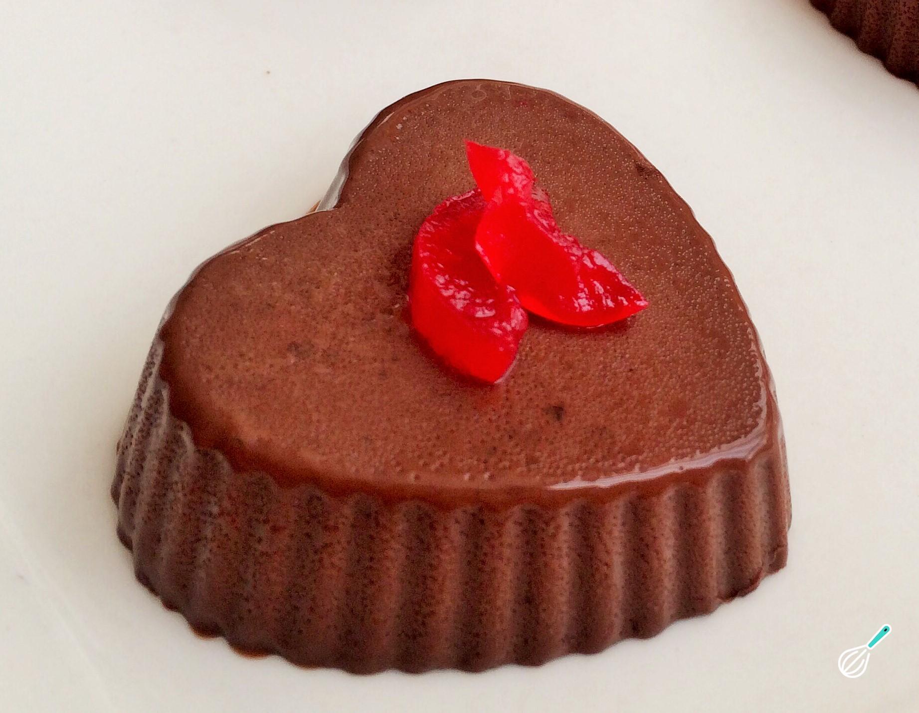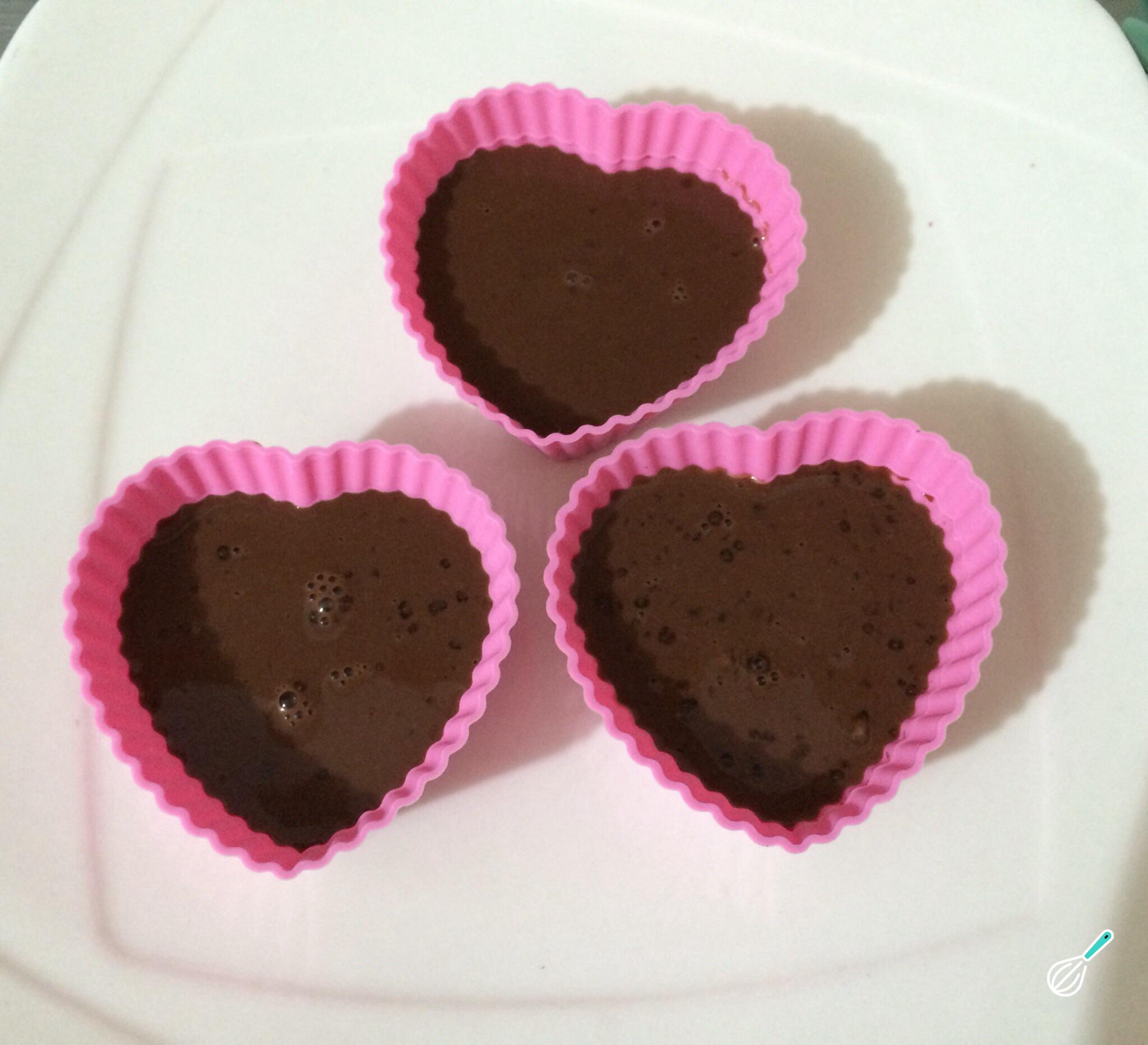 Distribua o preparado desta sobremesa sem lactose por forminhas individuais. Neste caso escolhi forminhas de silicone em forma de corações, pois esta é uma receita pensada para o Dia dos Namorados. Reserve na geladeira por, no mínimo, 1 hora.