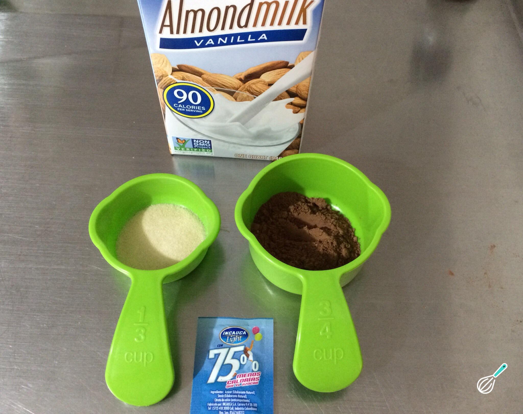 Antes de preparar esta sobremesa light, o primeiro passo é reunir os ingredientes necessários. Confira como preparar leite de amêndoas caseiro e use nessa receita, fica mais econômico que usar o de compra.