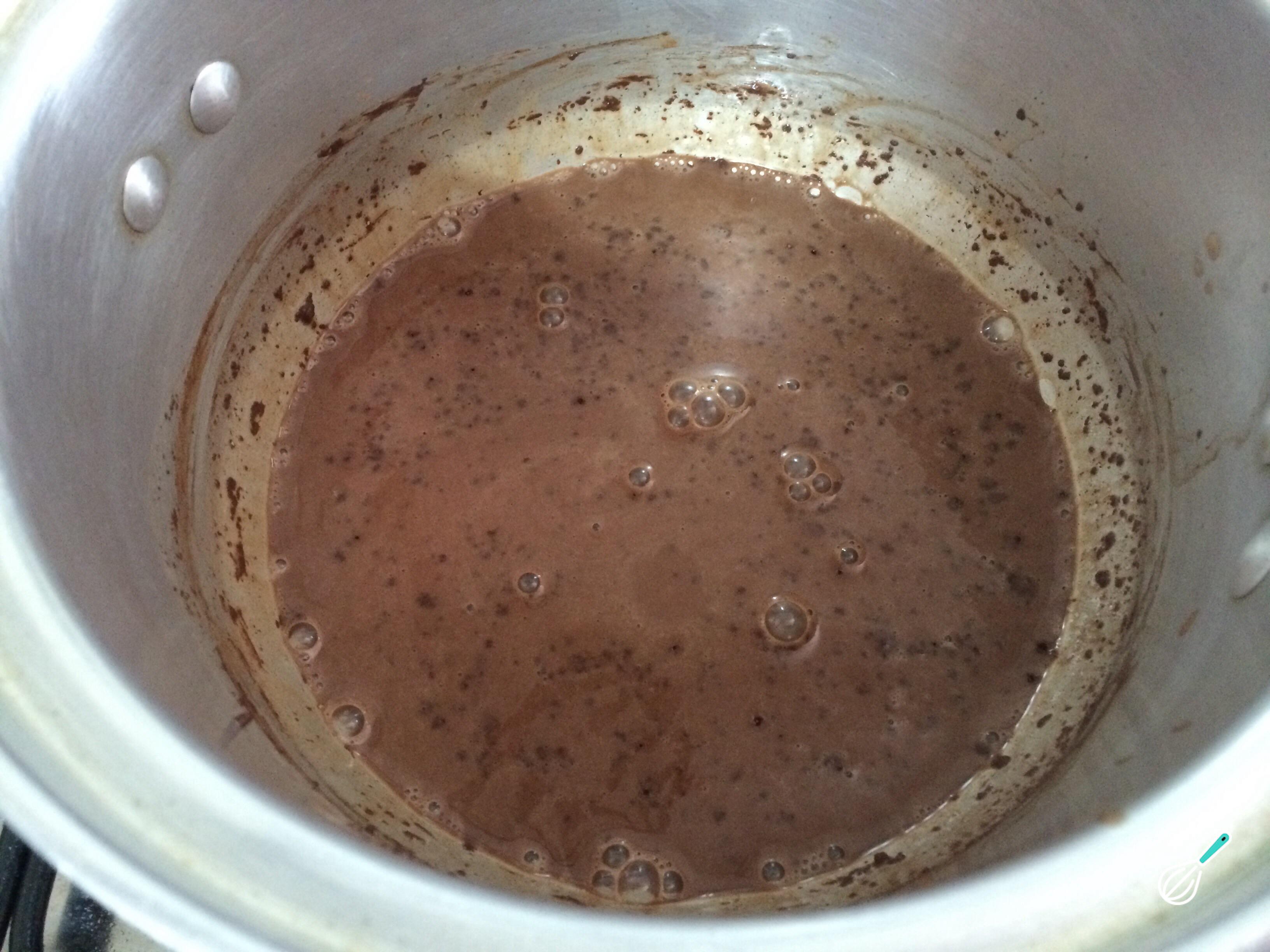 Leve o preparado ao fogo e misture continuamente até ferver. Quando isso acontecer, retire do fogo e deixe esfriar.