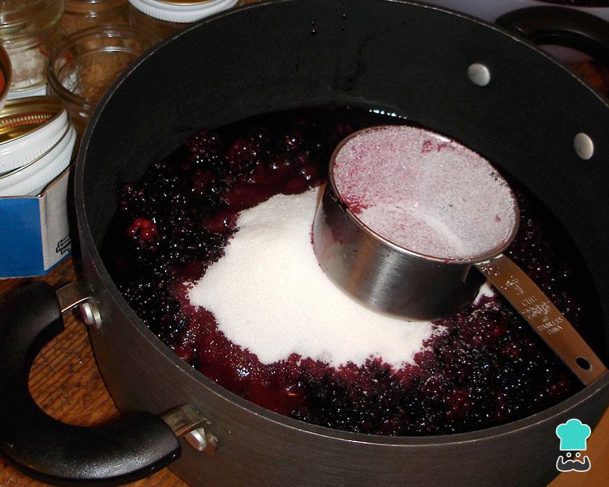 Leve ao fogo médio-baixo e fique mexendo de vez em quando, durante 30 minutos ou até as amoras ficarem macias e a geleia engrossar.