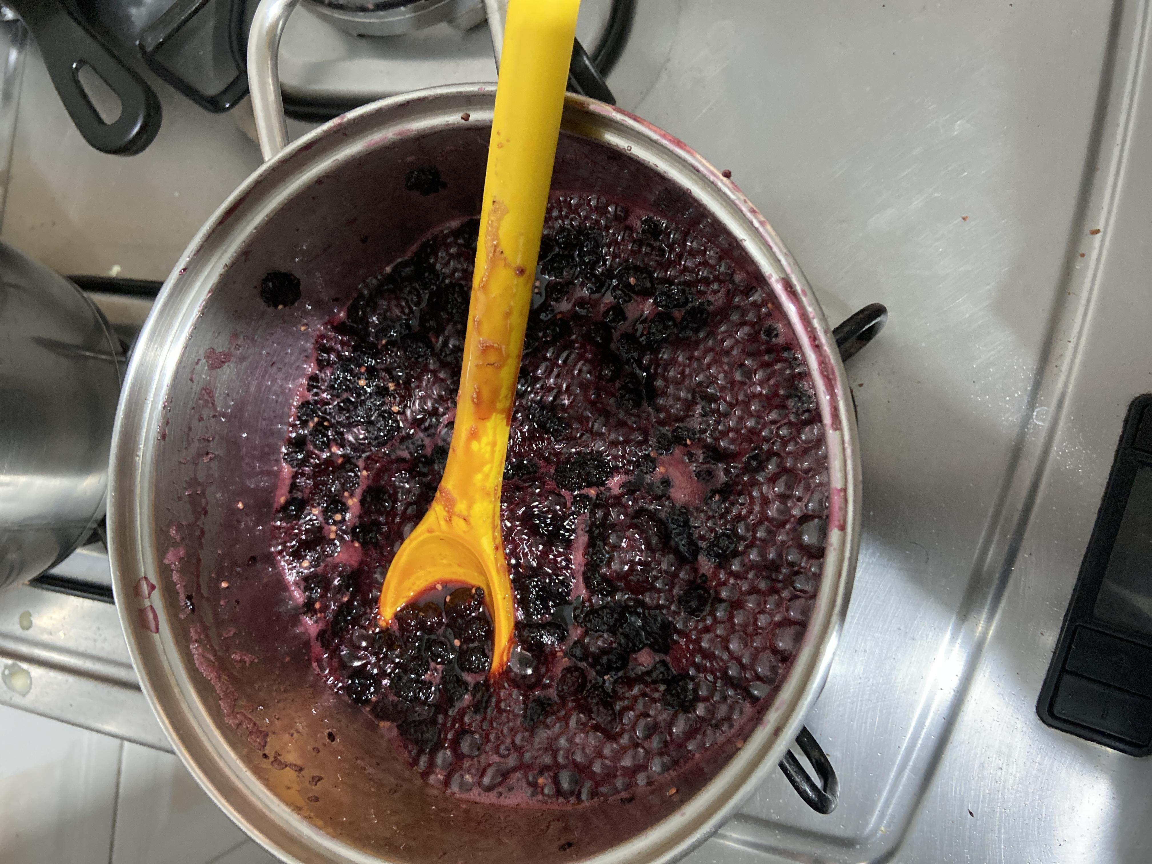 Dica: Mexa a geleia de amora de vez em quando para evitar queimar no fundo.