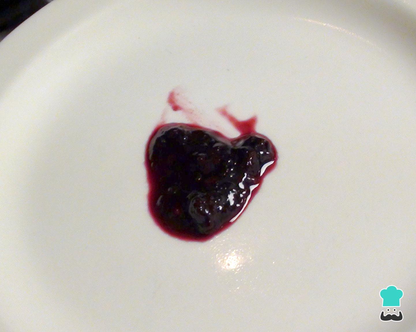 Pingue um pouco de geleia de amora num prato (como na foto) e incline o prato: a geleia praticamente não escorre.