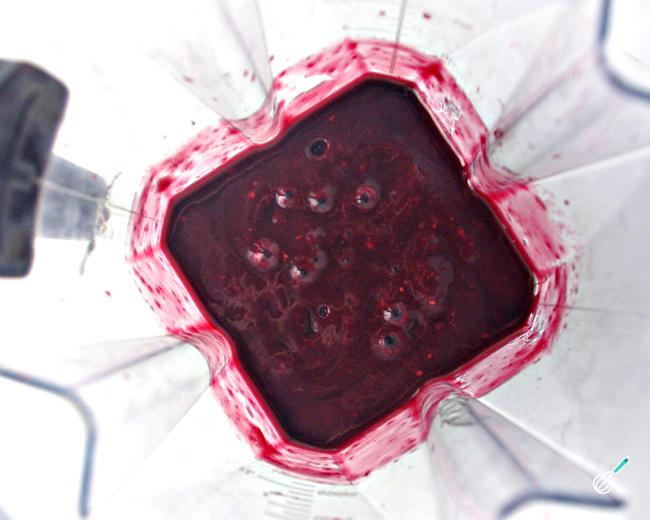 Em seguida bata a mistura no liquidificador e passe por uma peneira, para eliminar as sementinhas. Volte com a mistura de geleia no fogo e cozinhe por mais 10-15 minutos, ou até engrossar ao seu gosto (lembrando que ficará mais espesso depois de esfriar).