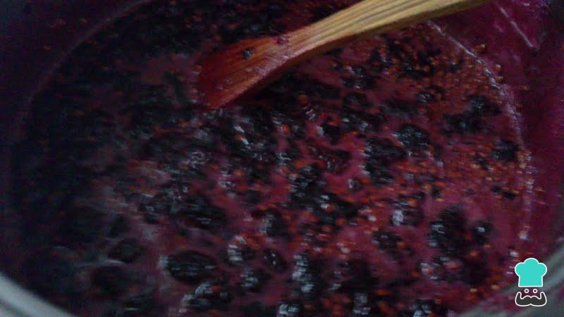 Quando a mistura estiver espessa e gelatinosa, desligue o fogo. Se quiser uma geleia de amora silvestre lisa, bata com o mixer ou no liquidificador. Reserve esta geleia caseira em frascos de vidro esterilizados, e desfrute depois de esfriar.