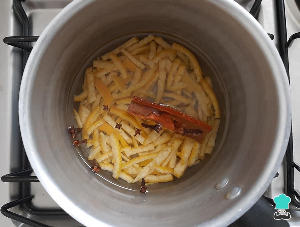 Se optar por incluir as tirinhas de casca da fruta, será necessário levá-las para ferver com água 3 vezes pelo menos (trocando a água todas as vezes) para evitar que deixe gosto amargo no seu doce.