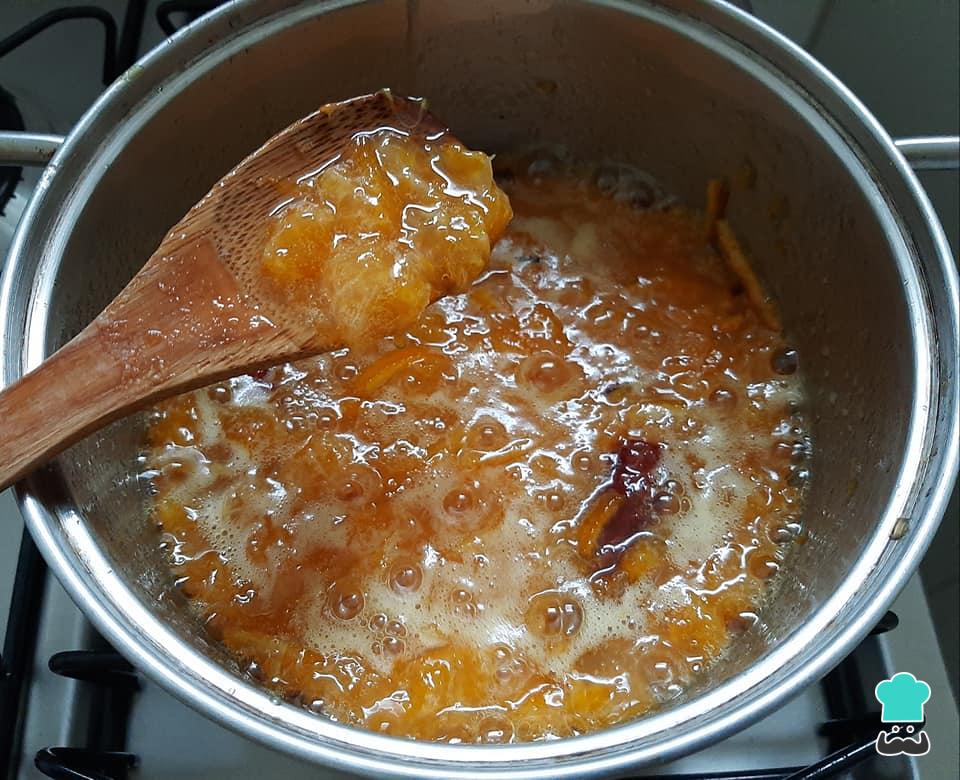 Dica: à medida que for cozinhando, retire o excesso de espuma que se formar para evitar o gosto amargo na geleia de bergamota.
