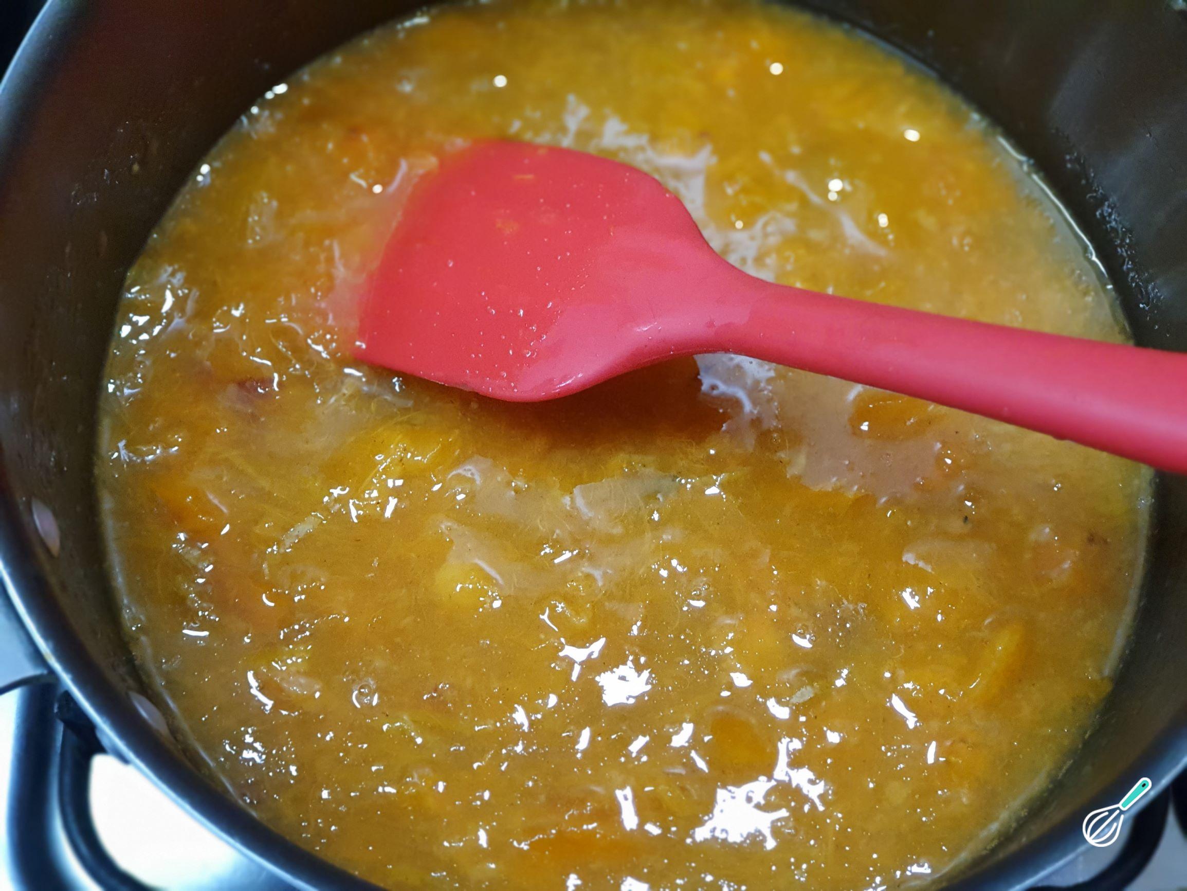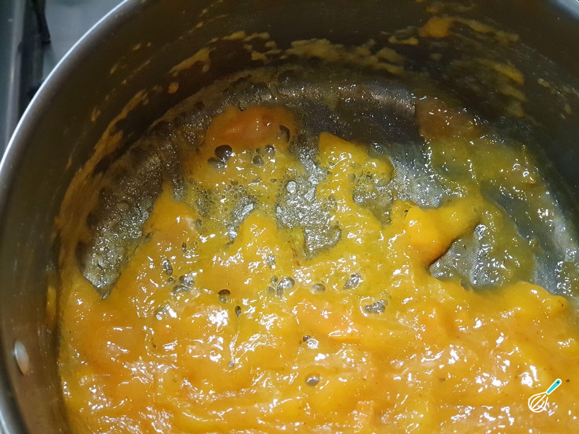 A geleia ficará cremosa e brilhante. Caso você goste de geleias com pimenta, a dica é acrescentar 1/2 pimenta dedo de moça sem sementes bem picadinha no início da fervura. Assim você terá uma geleia de caqui com pimenta perfeita para acompanhar carnes mais fortes como a carne de cordeiro, por exemplo!
