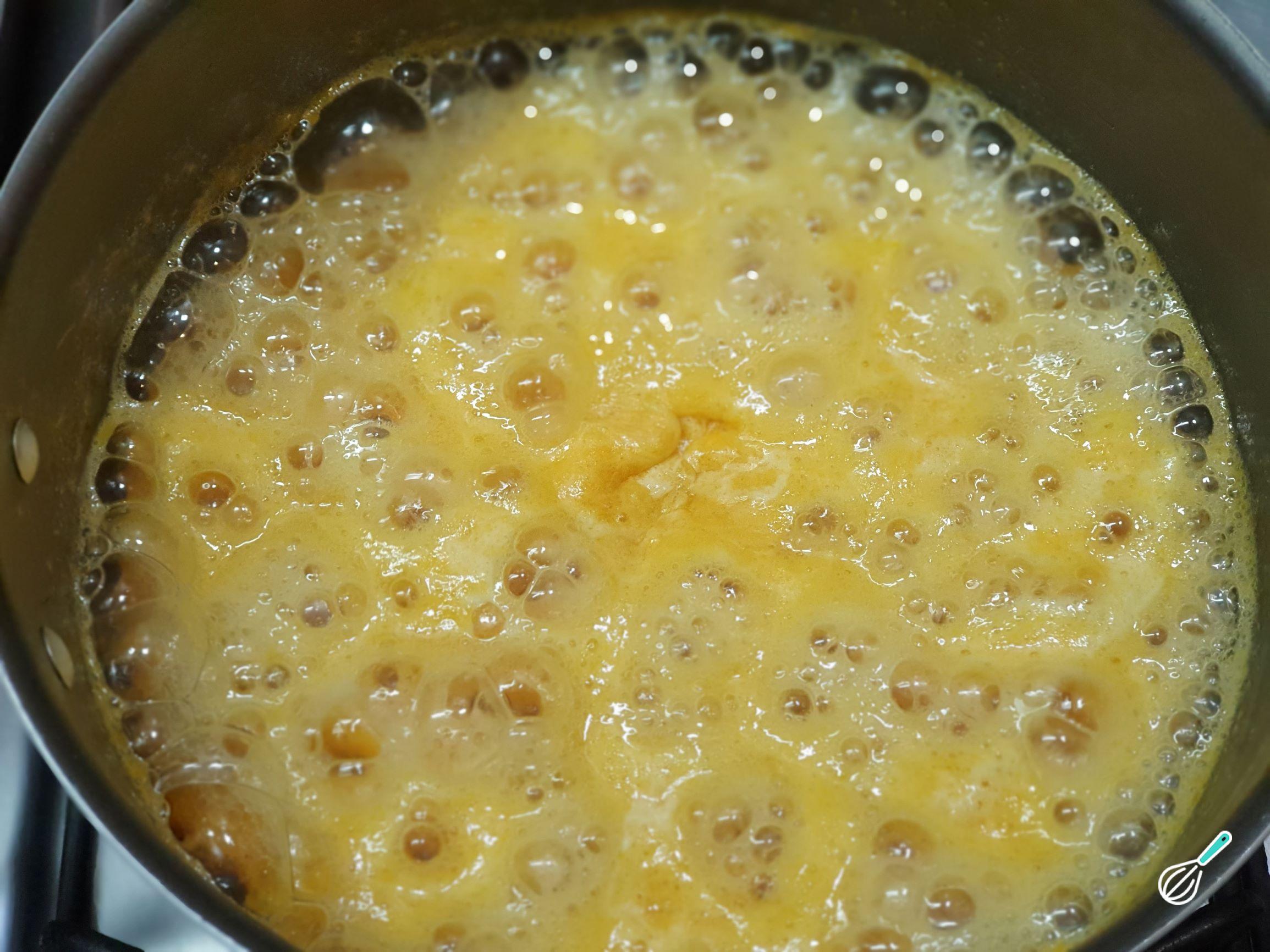 Quando começar a fervura, abaixe o fogo e continue mexendo.