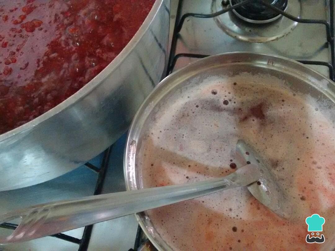 É de suma importância a retirada dessa espuma, caso contrário resultará em uma geleia de framboesa amarga e pouco brilhante.