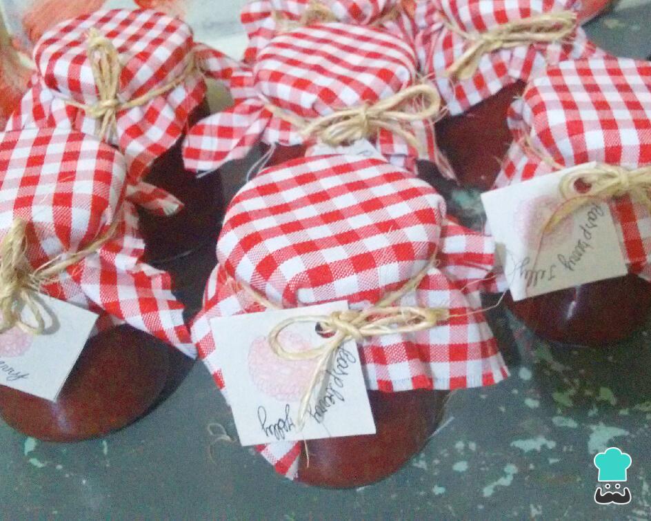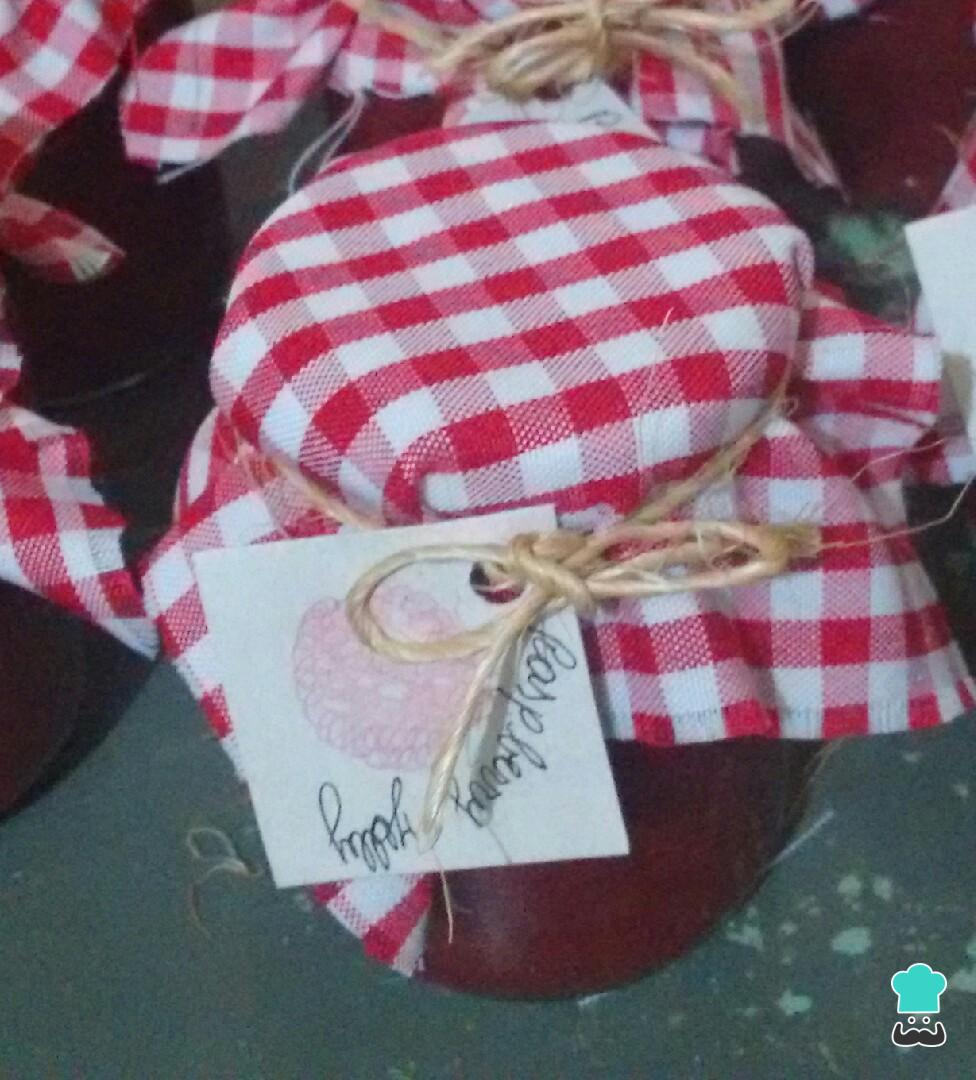 Coloque a geleia já morna no vidro e tampe bem. Leve de novo à fervura em água já quente e deixe ferver por 15 minutos, para que se forme vácuo no interior e a geleia possa ser armazenada durante meses. Retire, deixe esfriar por completo e decore a gosto.