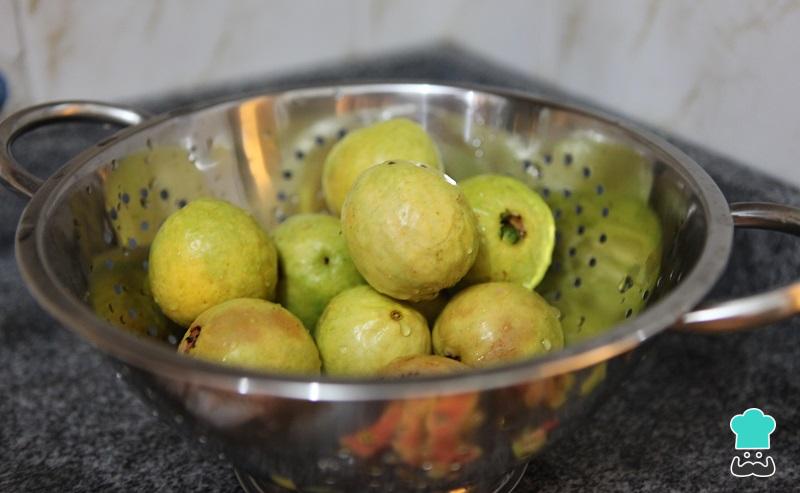 lava as goiabas inteiras, corta em cruz ou x com casca e tudo.