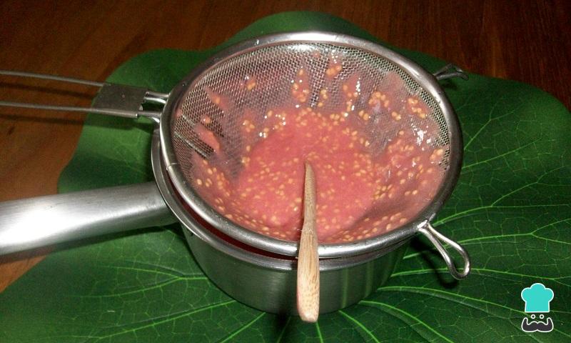 depois de cozinhar as goiabas, coa numa peneira...(a água separa pra fazer a geleia)
