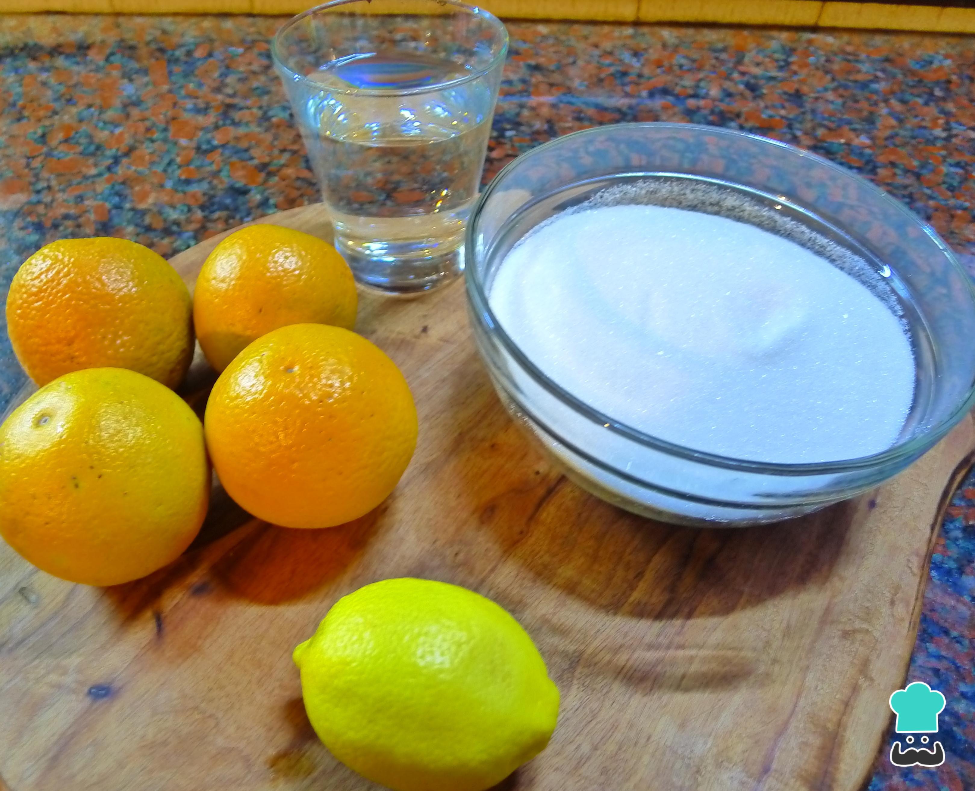 Para fazer esta geleia de laranja, comece por reunir os ingredientes necessários.
