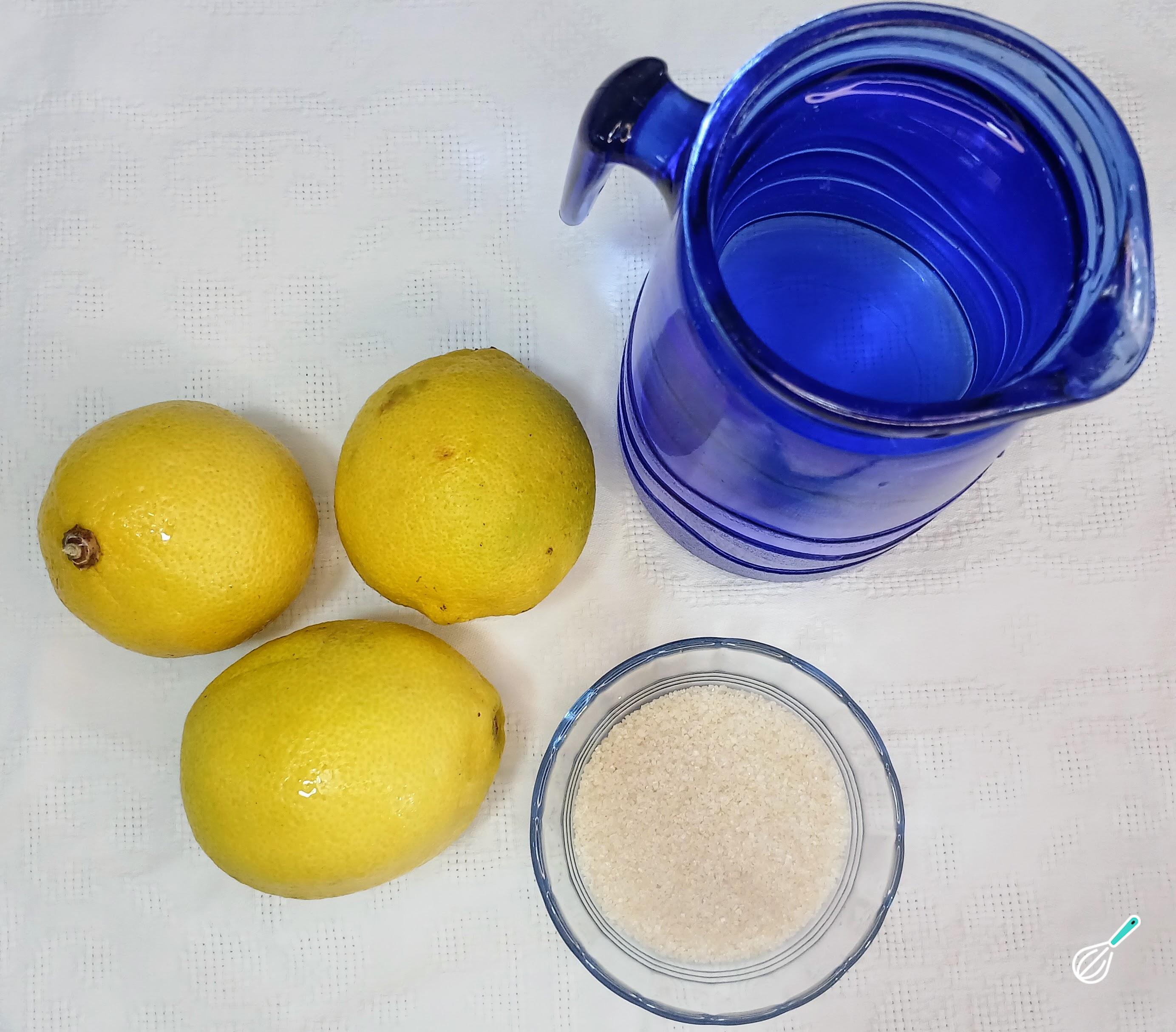 Comece separando os ingredientes para o preparo da geleia de limão. Separe os limões sicilianos, o açúcar e água. Deixe tudo separado para começar a receita.