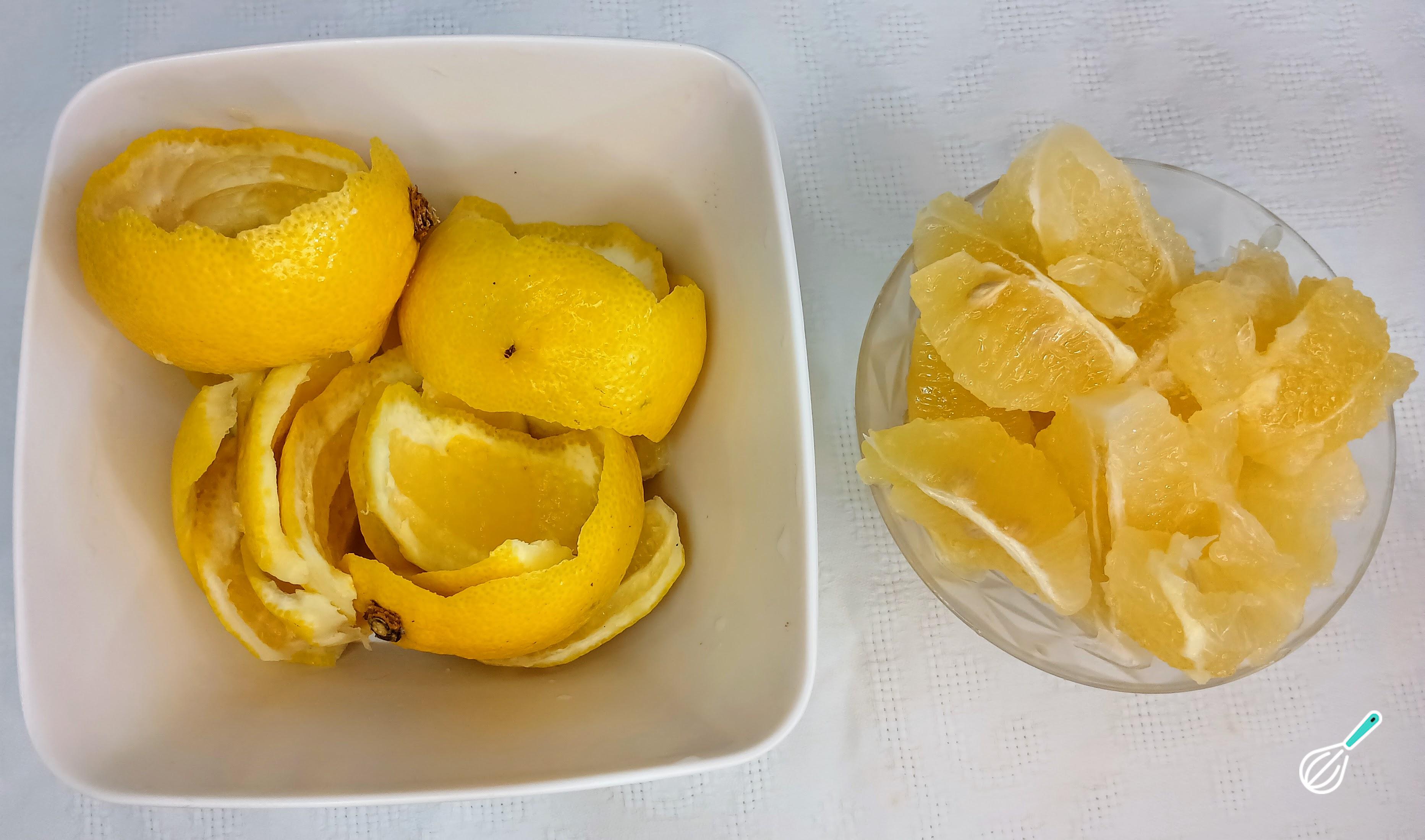 Dica: As cascas dos limões devem estar bem lavadas para serem usadas. Corte-as de modo que fiquem em uma espessura média.