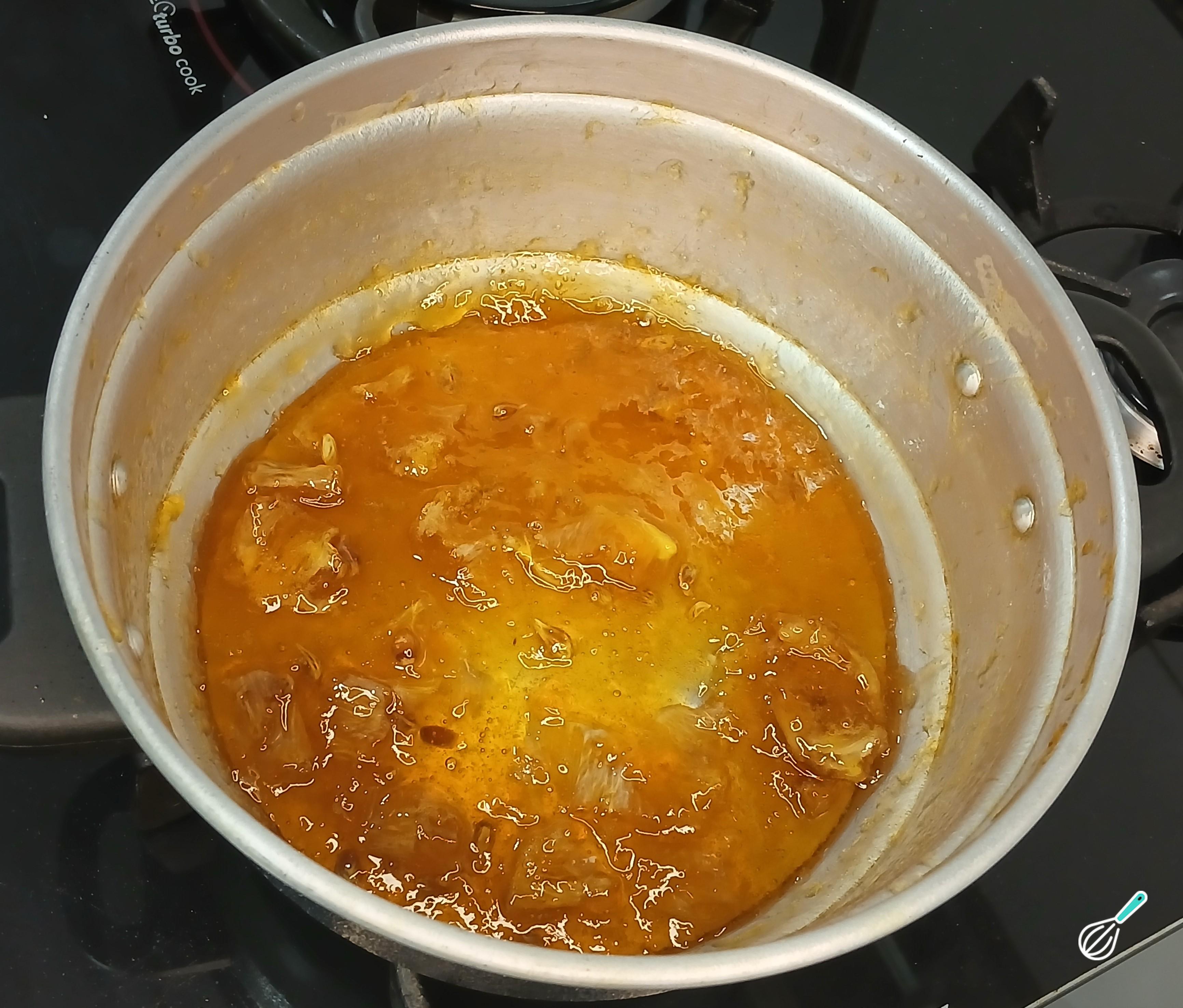 Dica: Se gostar adicione um pau de canela ao preparo. Não é necessário mexer, deixe reduzindo no fogo.
