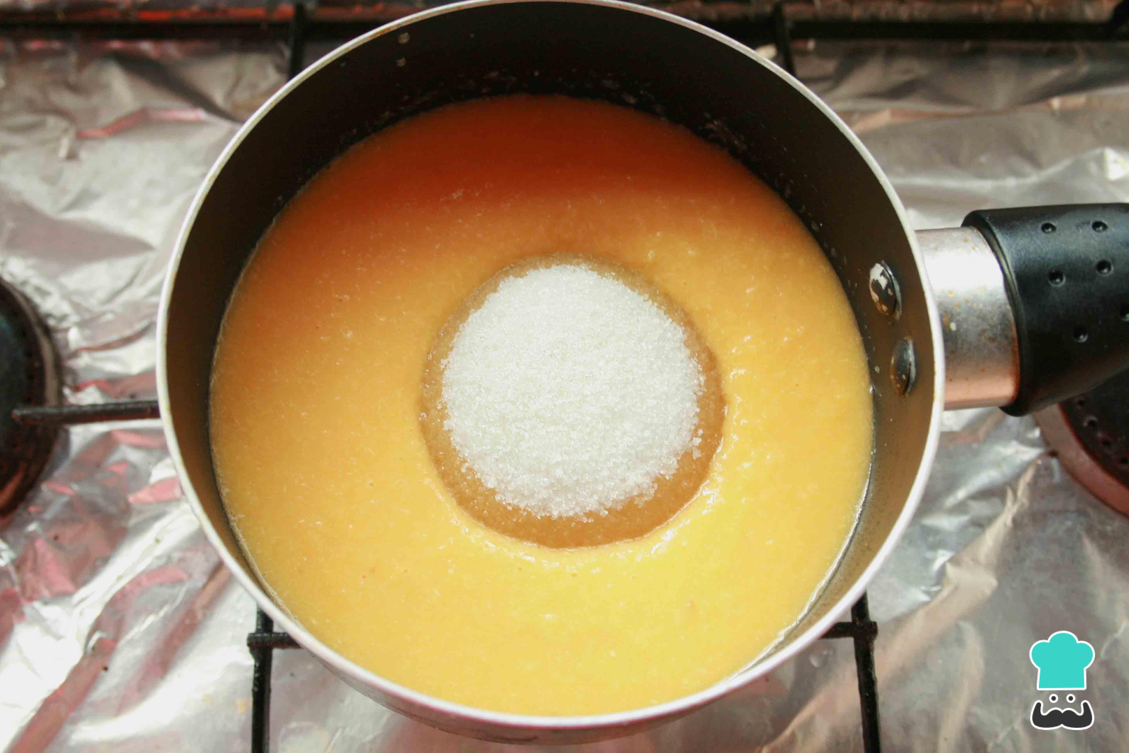 Cozinhe a geleia de mexerica em fogo médio mexendo sempre para evitar que grude no fundo. O ideal é deixar cozinhar por 30 minutos.