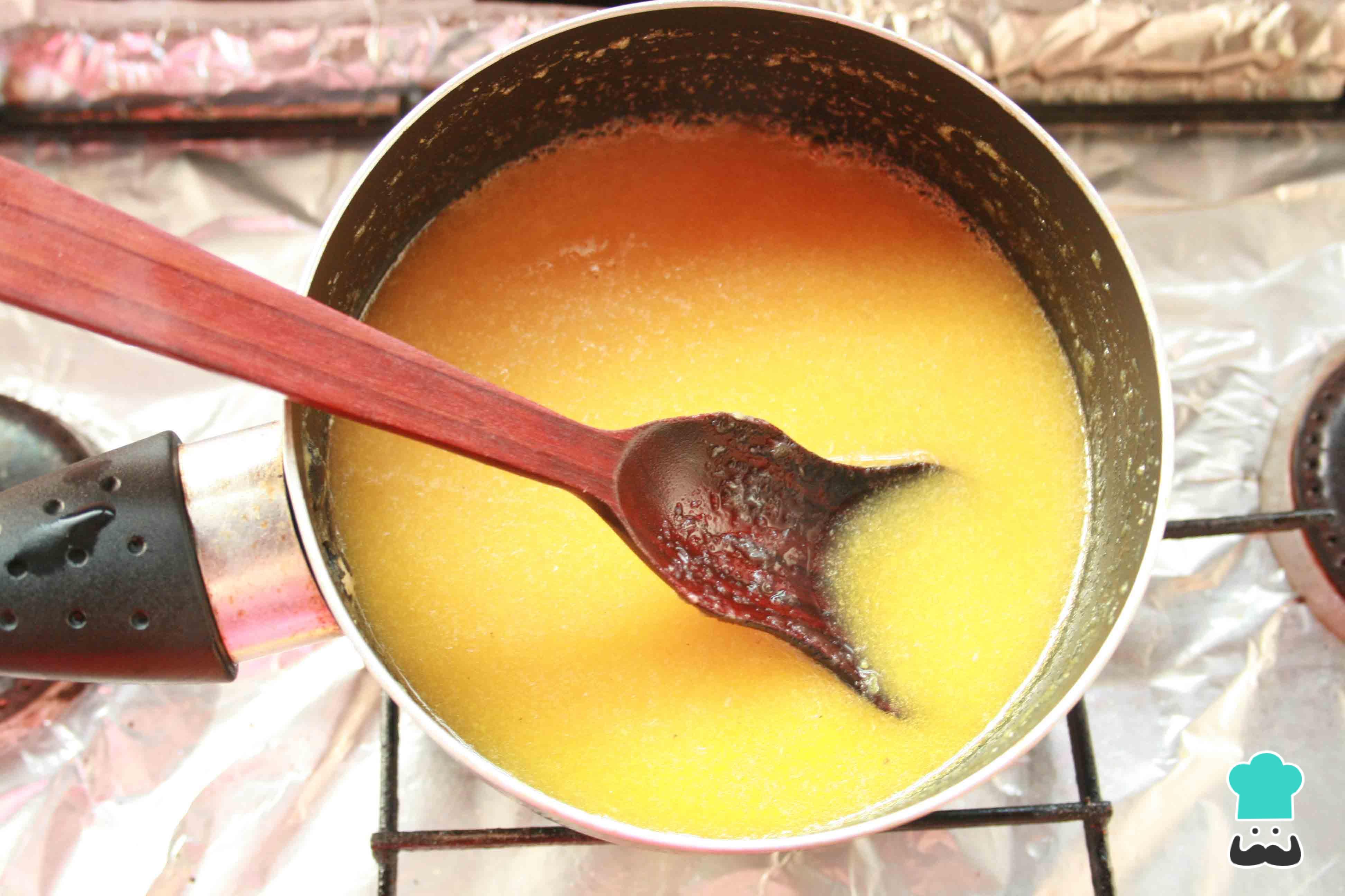 Coloque o suco da mexerica na panela, desta vez sem adicionar água, e junte o suco de limão. Misture e junte o açúcar.