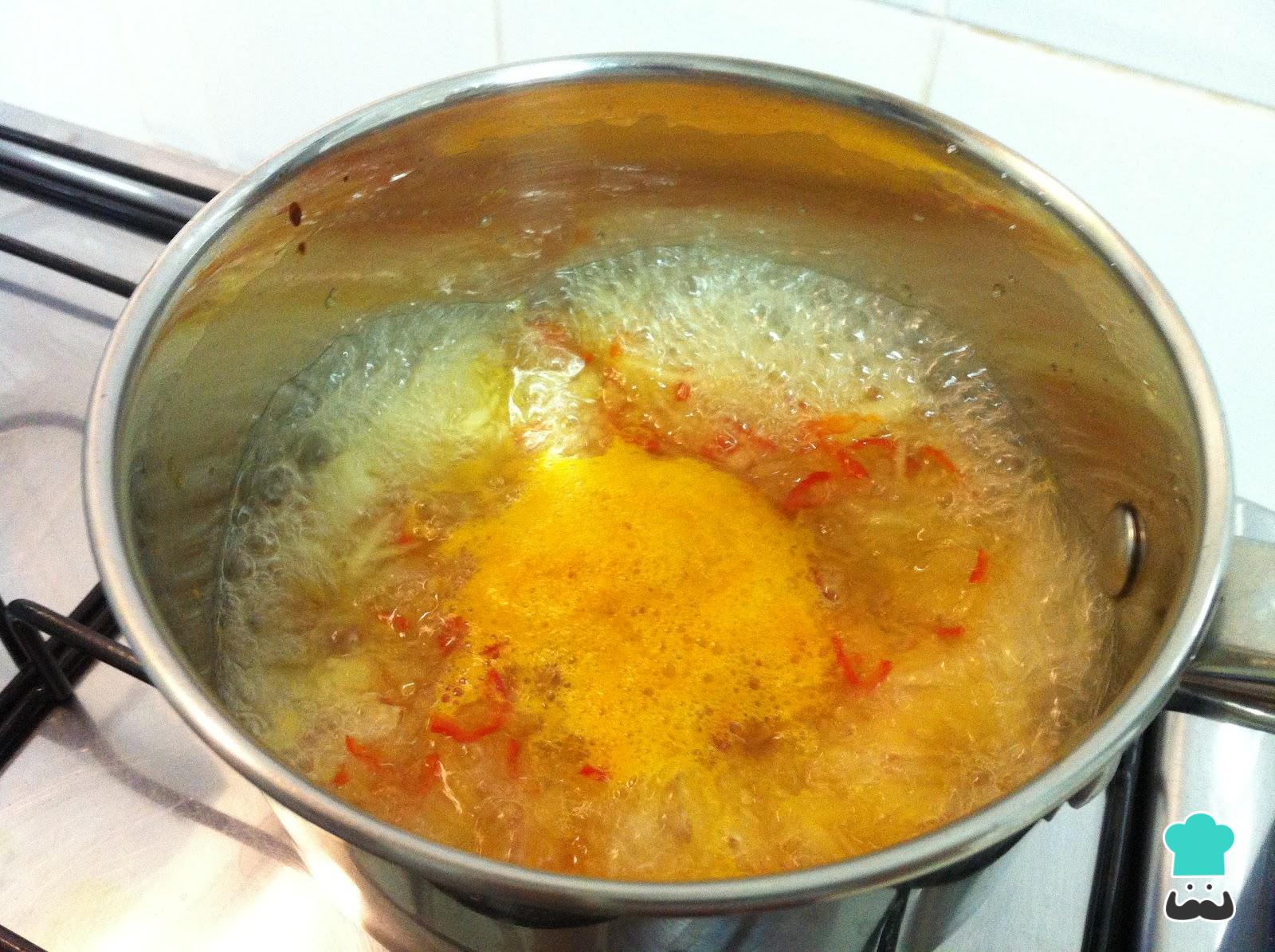 Junte todos os ingredientes em uma panela, misture bem e leve ao fogo.